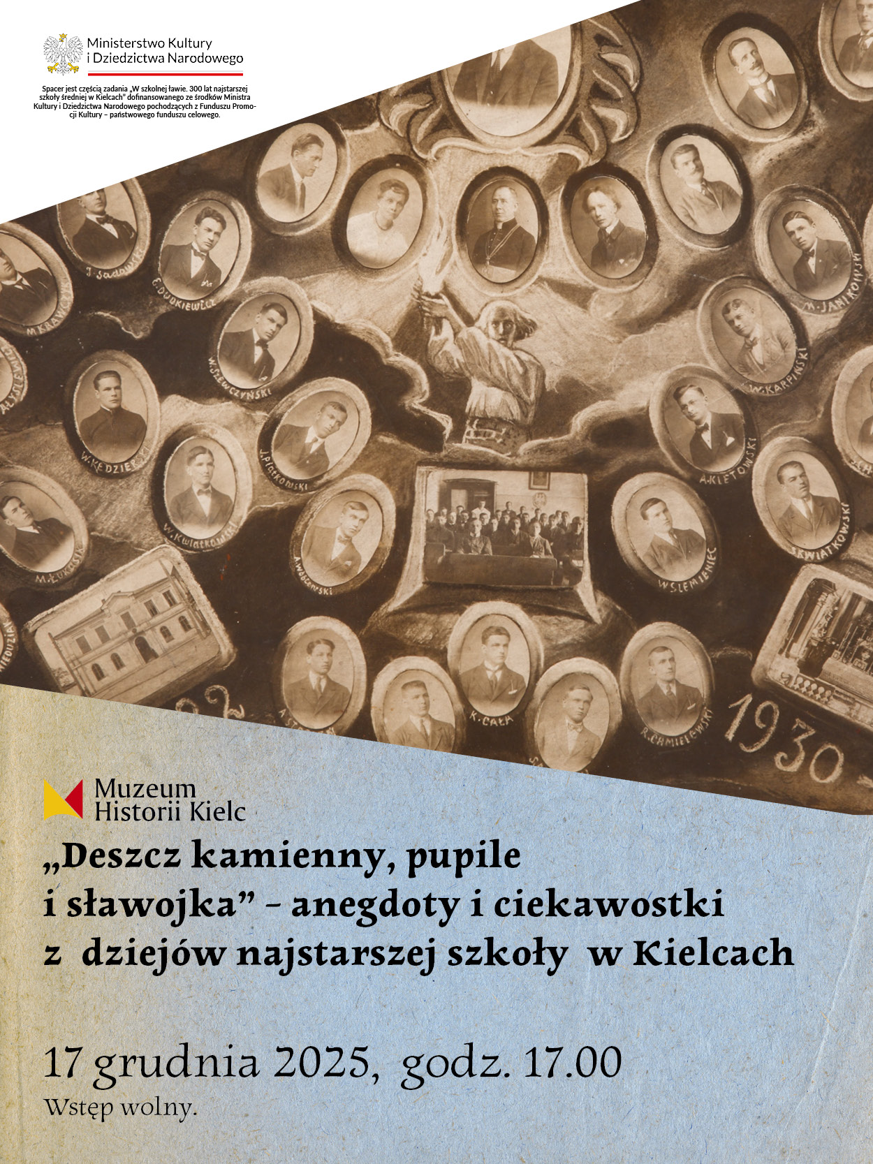 Wydarzenie towarzyszy wystawie czasowej „W szkolnej ławie. 300 lat najstarszej szkoły średniej w Kielcach”, która została przygotowana przez Muzeum Historii Kielc z okazji obchodów jubileuszu 300-lecia I Liceum Ogólnokształcącego im. Stefana Żeromskiego w Kielcach. Ekspozycja przedstawia dzieje szkoły – od jej powstania w XVIII wieku, przez okres zaborów, dwudziestolecie międzywojenne, okupację i czasy PRL, aż po współczesność. Zadanie zostało dofinansowane ze środków Ministra Kultury i Dziedzictwa Narodowego pochodzących z Funduszu Promocji Kultury – państwowego funduszu celowego. Wystawę będzie można zwiedzać do 31 marca 2026 roku.