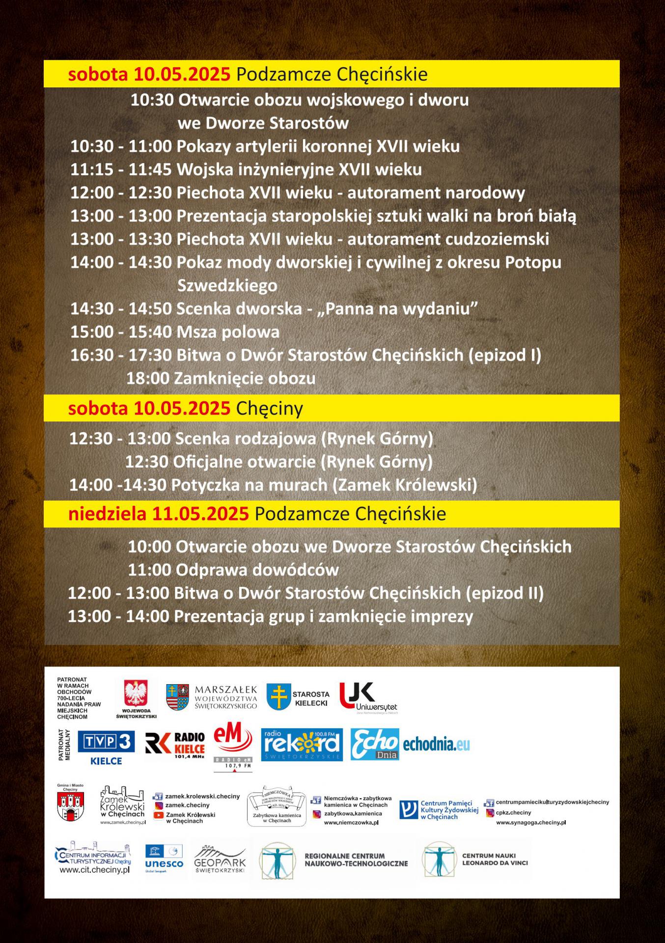 Wydarzenie pt. Dwór w ogniu! Szwedzi u bram Zamku Królewskiego! ma przypomnieć historyczne wydarzenia z udziałem Stefana Czarnieckiego, które miały miejsce na ziemi świętokrzyskiej w 1655 r. Przygotowana z wielkim rozmachem rekonstrukcja historyczna przeniesie widzów do okresu, w którym to po bitwie pod Żarnowem Stefan Czarniecki i król Jan Kazimierz zmuszeni byli do odwrotu na Kraków. Zatrzymali się po drodze w Dworze Starostów Chęcińskich w Podzamczu, gdzie doszło do starcia ze szwedzkimi oddziałami.