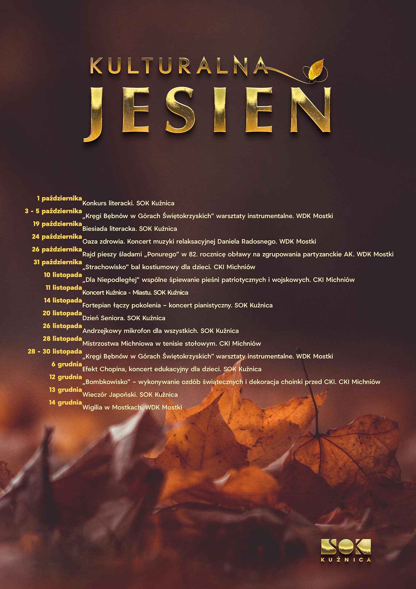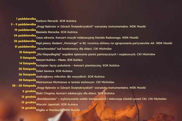„Kulturalna Jesień” potrwa aż do połowy grudnia. W ramach cyklu zaplanowane zostały następujące wydarzenia: