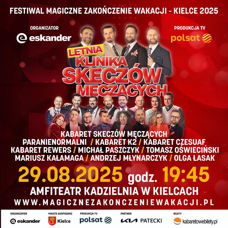 Magiczne Zakończenie Wakacji rozpocznie w piątek, 29 sierpnia o godzinie 19.45 „Letnia Klinika Skeczów Męczących”. Na scenie wystąpią: Kabaret Skeczów Męczących, Paranienormalni, Kabaret K2, Rewers, Czesuaf, Olga Łasak, Michał Paszczyk, Mariusz Kałamaga, Andrzej Młynarczyk i Tomasz Oświeciński.