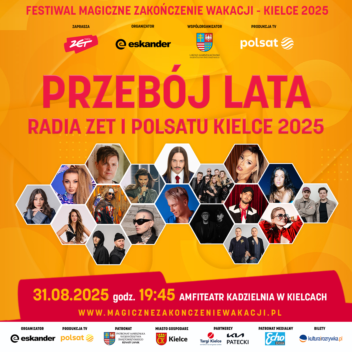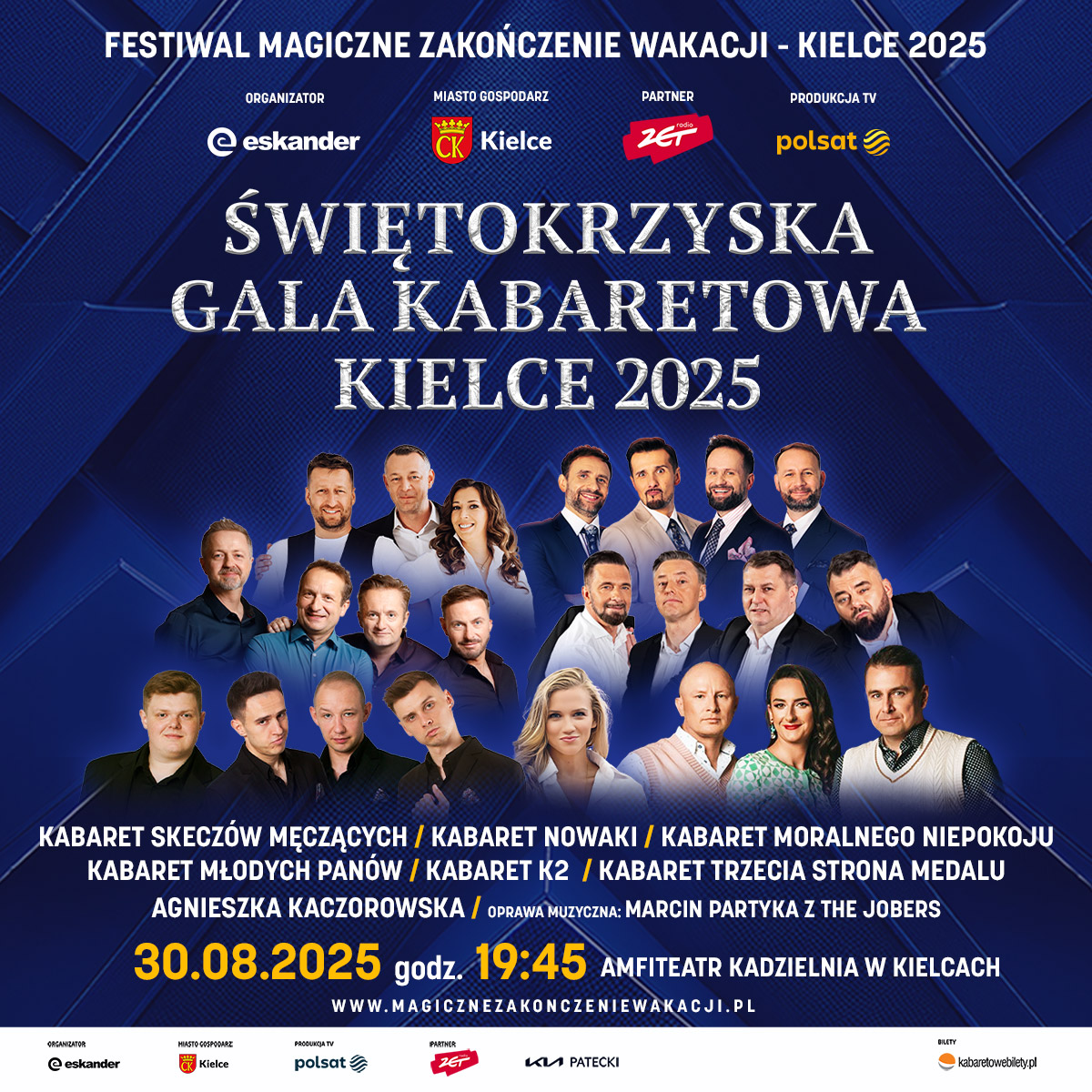 Świętokrzyska Gala Kabaretowa oraz koncert „Przebój Lata Radia ZET i Polsatu” będą transmitowane na żywo w Telewizji Polsat od godziny 20.05. Bilety na wszystkie wydarzenia można kupić na kabaretowebilety.pl i kulturairozrywka.pl. Szczegółowy program festiwalu można znaleźć na oficjalnej stronie: https://magicznezakonczeniewakacji.pl/.