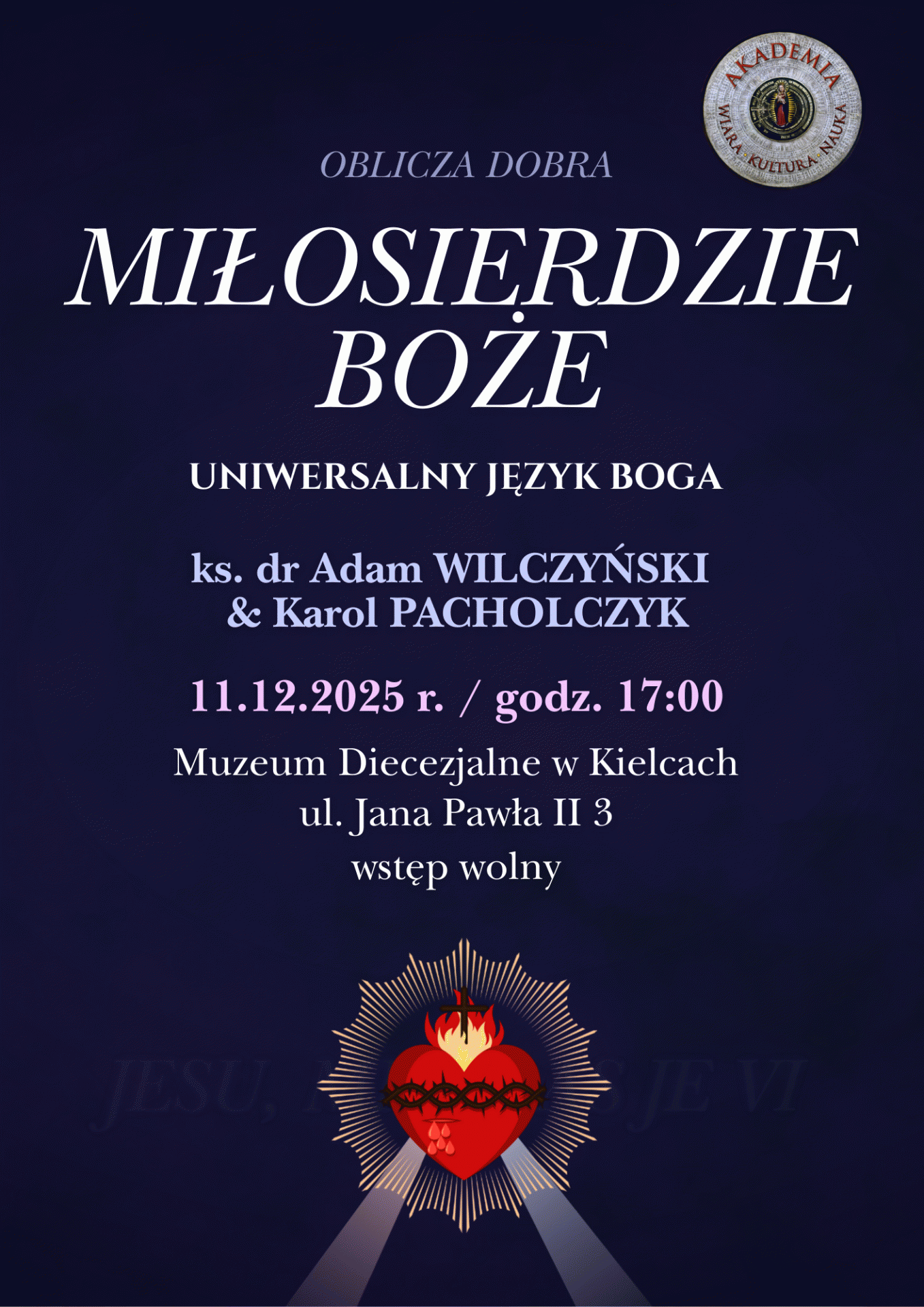 Wykład „Oblicza dobra: Miłosierdzie Boże. Uniwersalny język Boga” odbędzie się w czwartek, 11 grudnia, o godzinie 17 w Muzeum Diecezjalnym w Kielcach. Wstęp jest wolny.