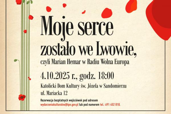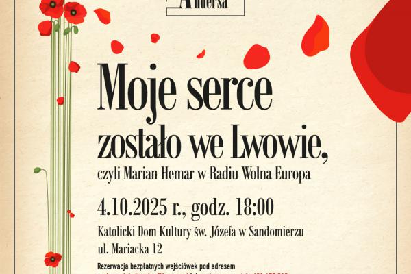 „Moje serce zostało we Lwowie, czyli Marian Hemar w Radiu Wolna Europa” to spektakl muzyczny o niezwykle barwnym i ciekawym okresie życia Mariana Hemara, czyli o jego pracy w Radiu Wolna Europa. W tym roku mija 50 lat od śmierci założyciela Qui pro Quo i Cyrulika Warszawskiego. Wybitny poeta: twórca kabaretów, piosenek, dramaturg i tłumacz. Jak sam siebie określał ,,lwowofil”. Związany ze Lwowem do końca życia, nigdy po wojnie do niego nie wrócił, podobnie jak jego brat stryjeczny – Stanisław Lem. Z powodu zaangażowania w pracę rządu emigracyjnego był „źle widziany” w swojej ojczyźnie.