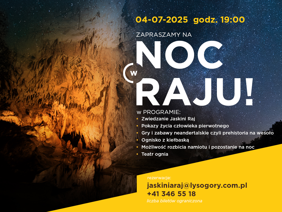 - Możliwość rozbicia namiotu w bezpośrednim sąsiedztwie jaskini i pozostania na noc.