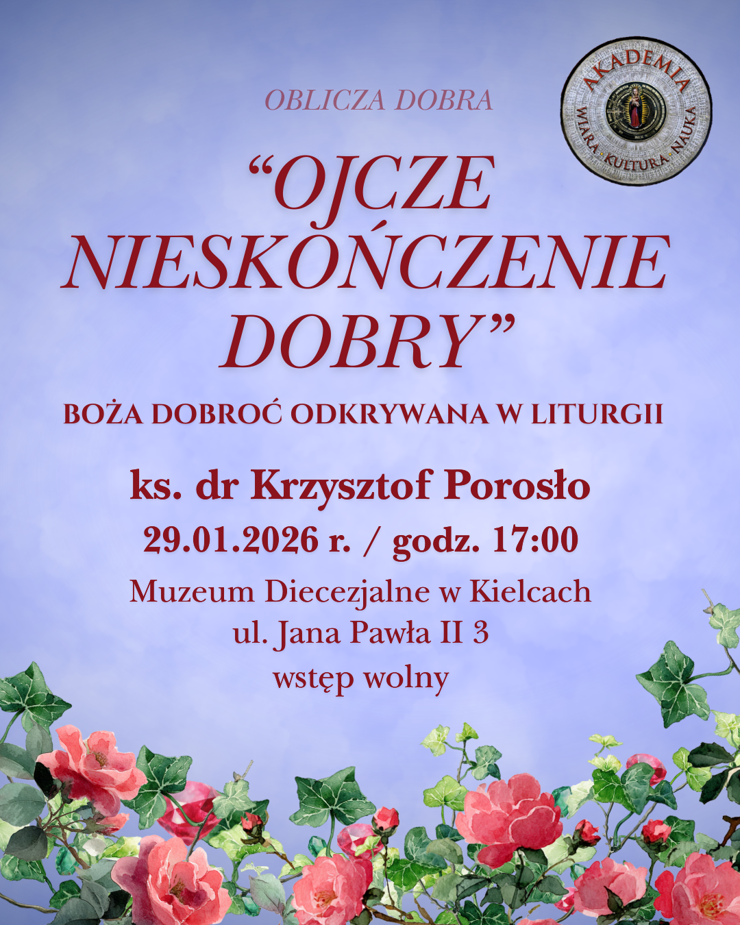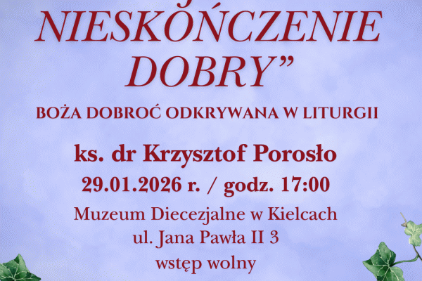 Wykład „Oblicza dobra: Ojcze nieskończenie dobry” odbędzie się w czwartek, 29 stycznia, o godzinie 17 w Muzeum Diecezjalnym w Kielcach. Wstęp jest wolny.