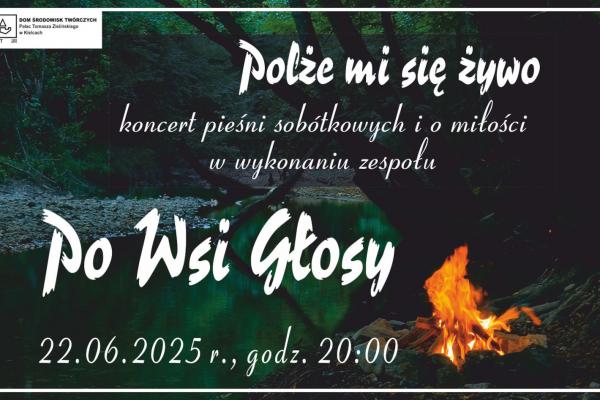 „Polże mi się żywo” to koncert tradycyjnych pieśni ludowych z Polski, Ukrainy, Białorusi i Bałkanów – pieśni sobótkowych oraz o miłości. Na scenie wystąpi zespół Po Wsi Głosy, który od początku zachwyca autentycznością, energią i bezkompromisowym oddaniem pieśni. Po Wsi Głosy to grupa powstała z pasji do śpiewu, wychodzącej z przemożnej potrzeby serca. Śpiewaczki pochodzą z różnych stron Polski i regionów kulturowych, a spotkały się w Kielcach. Połączyła je miłość do muzyki ludowej oraz pragnienie doskonalenia umiejętności śpiewu archaicznego poprzez zgłębianie i wykonywanie pieśni tradycyjnych z obszaru całej Słowiańszczyzny. W 2025 roku pod kierunkiem Luizy Raczyło stworzyły zespół, by kultywować przekaz nieco zapomnianych już pieśni, przez które przemawiają głosy przodków.