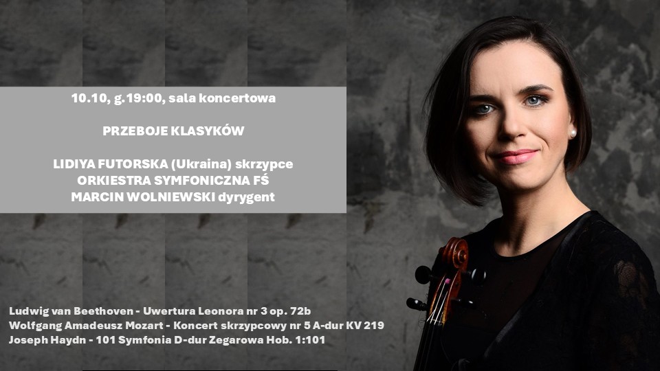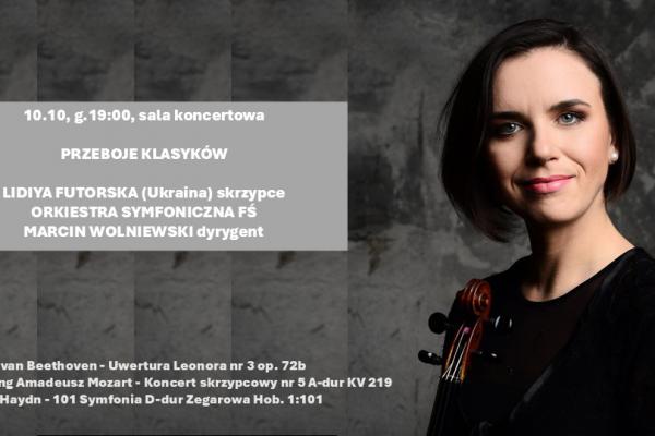 Solistką wieczoru będzie utalentowana skrzypaczka Lidiya Futorska. W 1988 roku rozpoczęła naukę w tzw. „szkole talentów” – Lwowskiej Średniej Specjalnej Muzycznej Szkole im. Salomei Kruszelnickiej, w klasach profesorów Marii Futorskiej i Georgija Pawlija. Pośród pierwszych znacznych osiągnięć skrzypaczki znalazły się: uczestnictwo w programie „Classik-premier” (Kijów, 1994) oraz zdobycie tytułu laureata festiwalu „Nowe imiona młodych gwiazd Ukrainy” (Kijów, 1996), które to sukcesy stały się podstawą do przyznania młodej skrzypaczce Stypendium Prezydenta Ukrainy.
