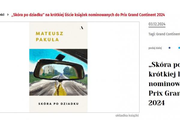 W finale Nagrody Grand Continent 2024 obok książki Pakuły znalazły się także utwory Martiny Hefter, Eduardo Halfona, Michele Masneriego i Frédérica Grosa.