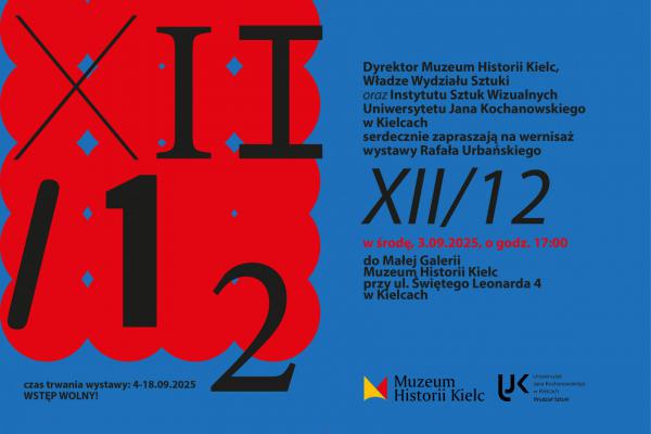 Wystawa w Małej Galerii MHK stworzy możliwość spotkania się z twórczością Rafała Urbańskiego w formie przekrojowej. Cykl XII/12 to podróż przez dwanaście lat artystycznych poszukiwań i sukcesów, które po raz pierwszy zostaną zaprezentowane wspólnie, w jednym miejscu, w Kielcach.