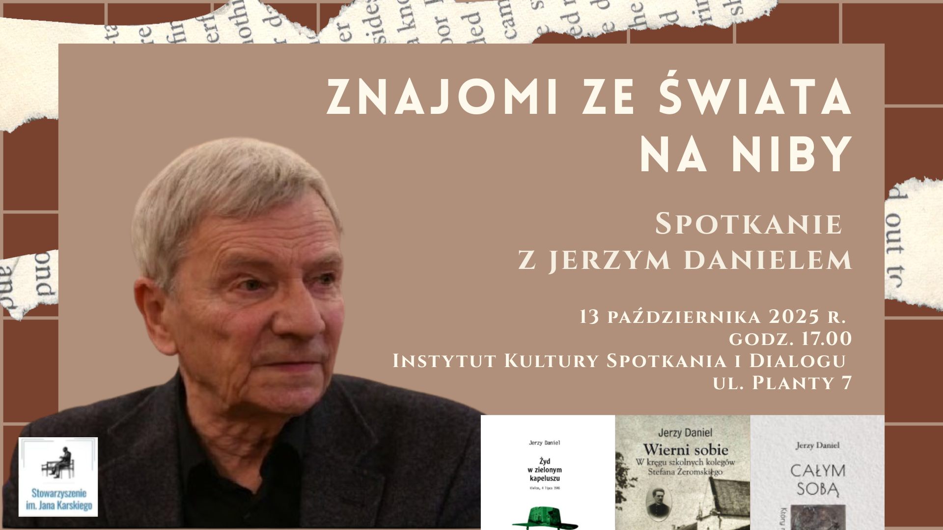 Jerzy Daniel (ur. w 1942 r.) to dziennikarz, publicysta, autor książek, wydawca i działacz kultury, członek Stowarzyszenia Dziennikarzy RP i Kieleckiego Towarzystwa Naukowego. Od lat dokumentuje historię regionu, odkrywając zapomniane opowieści i przybliżając postacie, które kształtowały tożsamość miasta. Jego książki są cennym źródłem wiedzy dla miłośników lokalnej historii. Spod jego pióra wyszły: Legenda 1914 (napisana wspólnie z Jerzym Osieckim), Kielce na dawnej pocztówce, Żyd w zielonym kapeluszu, Sztuka ziemi kieleckiej. Fotografika, Ta ziemia uroczna, Takie czasy, Święty Krzyż, W gwiazdach zapisane, Wierni sobie. W 2002 r. Jerzy Daniel opracował i wydał w obszernym tomie Sobowtóry – opowiadania zebrane Jadwigi Maurer, pochodzącej z Kielc emigracyjnej pisarki o żydowskich korzeniach.