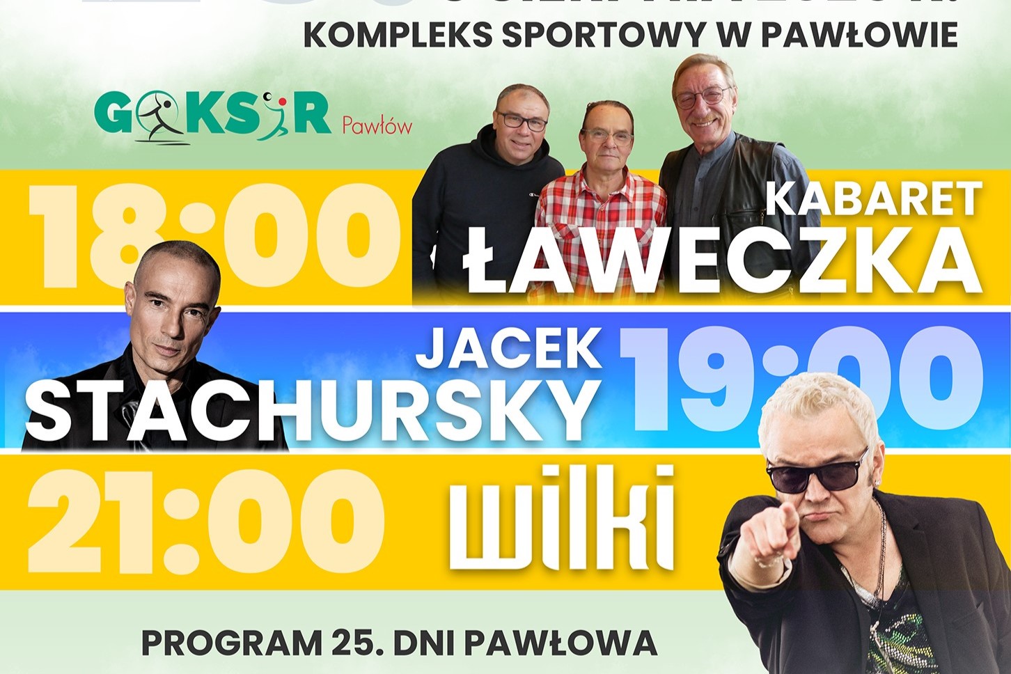 O godzinie 18 na scenie pojawią się aktorzy z kultowego serialu „Ranczo”, którzy tworzą Kabaret Ławeczka. Następnie, o godzinie 19, odbędzie się koncert Jacka Stachursky’ego oraz zespołu Wilki (o godzinie 21). Imprezę zakończy pokaz sztucznych ogni oraz dyskoteka pod gwiazdami.