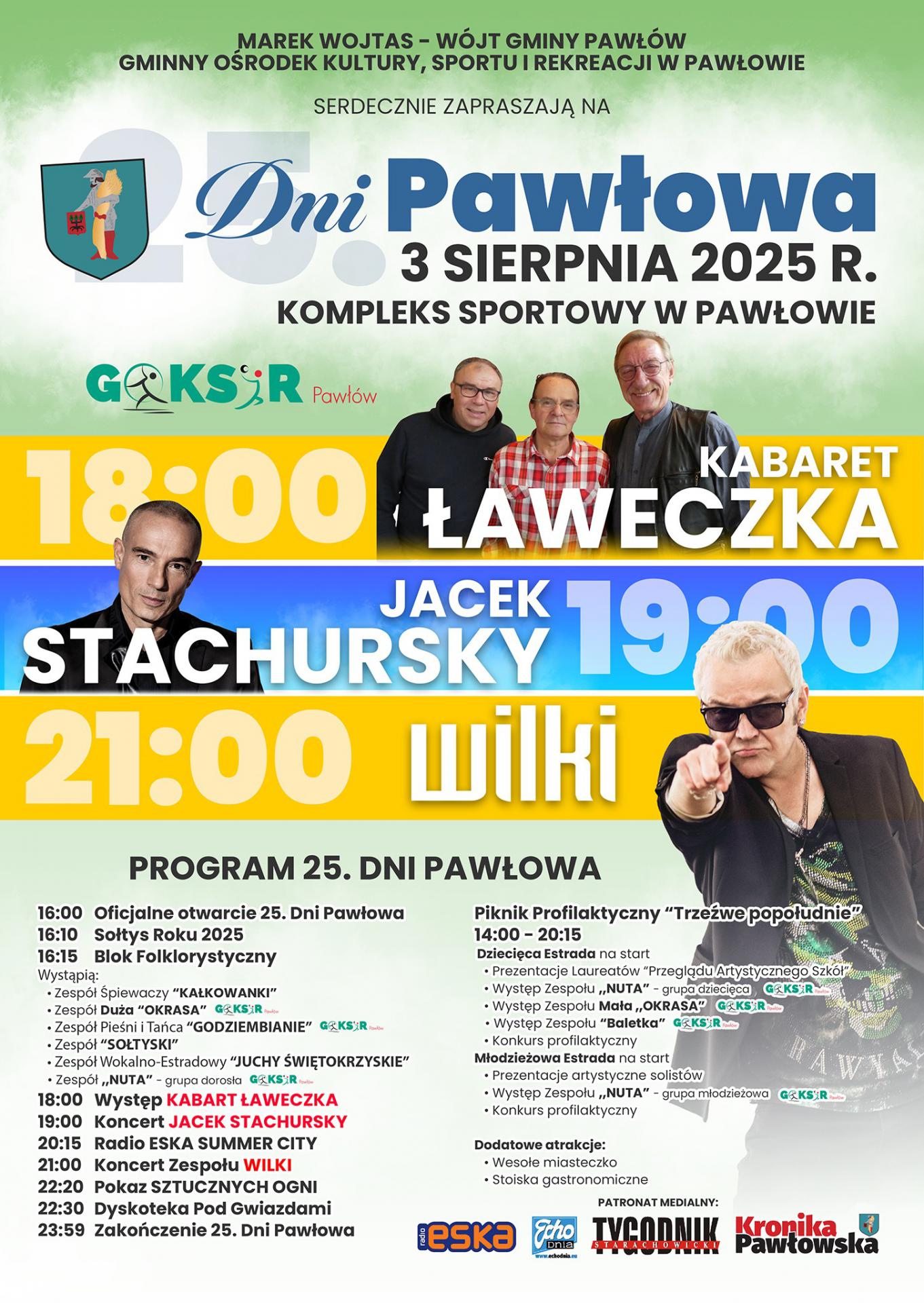 Organizatorami 25. Dni Pawłowa są wójt gminy Pawłów oraz Gminny Ośrodek Kultury, Sportu i Rekreacji w Pawłowie.