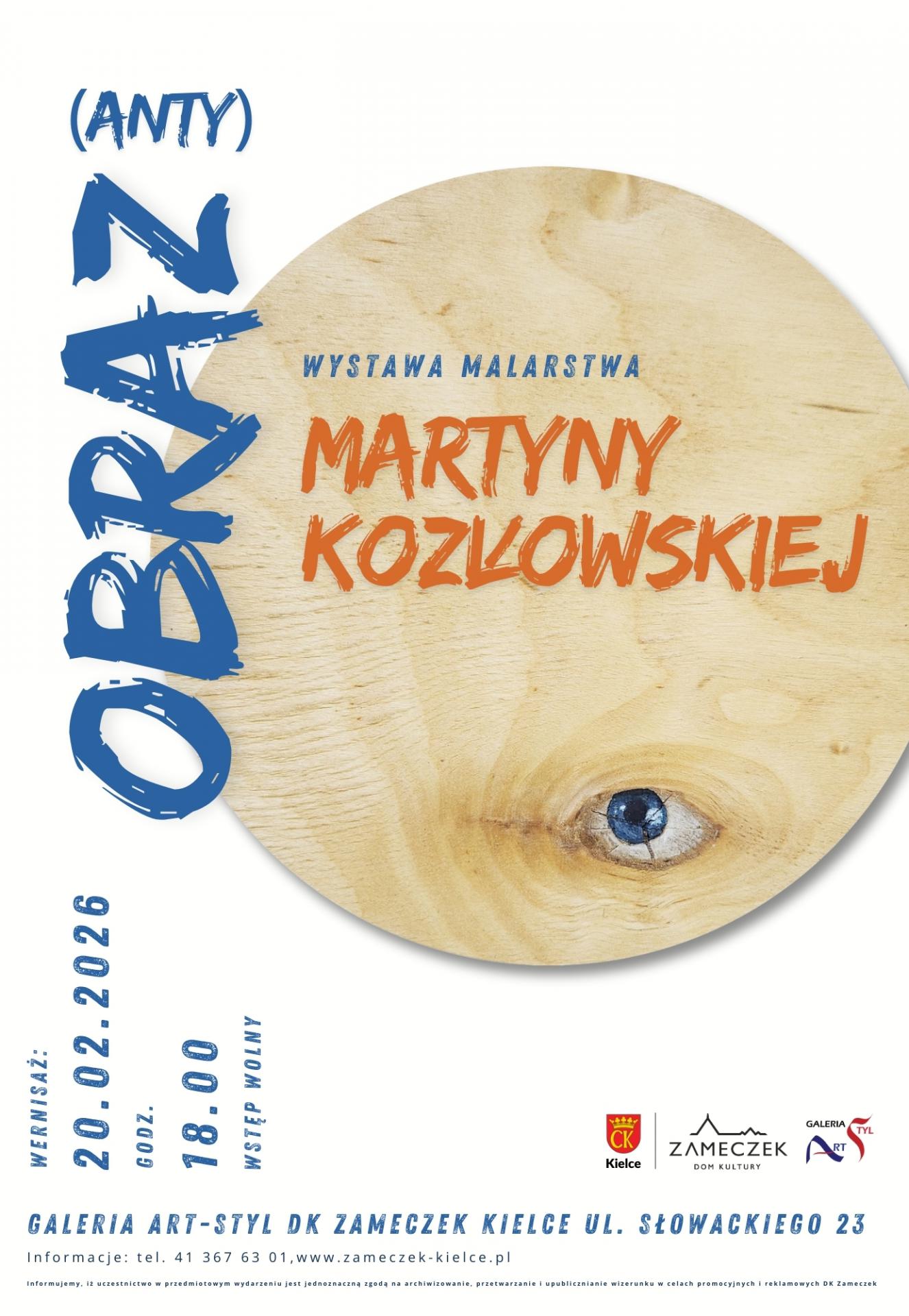 Martyna Kozłowska – Absolwentka UJK w Kielcach, studiów magisterskich na kierunku Sztuki plastyczne. Obecnie członkini ZPAP Okrąg Kielce. Autorka prac malarskich, graficznych, rysunkowych oraz fotografii. Inspiracją w tworzeniu jest dla niej człowiek, jego emocje i duchowość. Otrzymała stypendium Ministra Nauki i Szkolnictwa Wyższego za znaczące osiągnięcia. Brała udział w wielu wystawach zbiorowych w tym w wystawach pokonkursowych. Otrzymała Nagrodę Marszałka Województwa Mazowieckiego w Ogólnopolskim Biennale Sztuki „47. Salon Zimowy”, nagrodę specjalną w 47. Interdyscyplinarnym Konkursie Plastycznym Województwa Świętokrzyskiego „Przedwiośnie” oraz Nagrodę Specjalną Jury w Ogólnopolskim Konkursie Twórczym “Zróbmy sobie Chopina”.