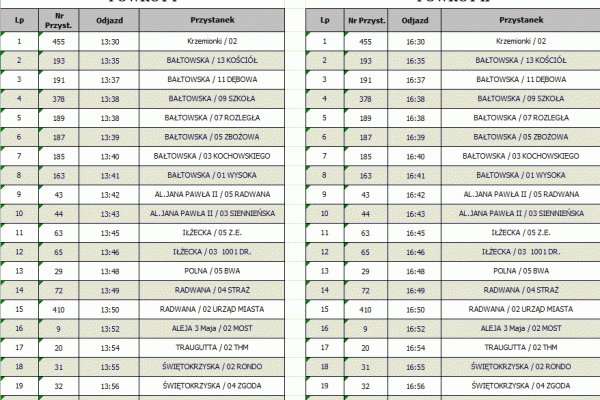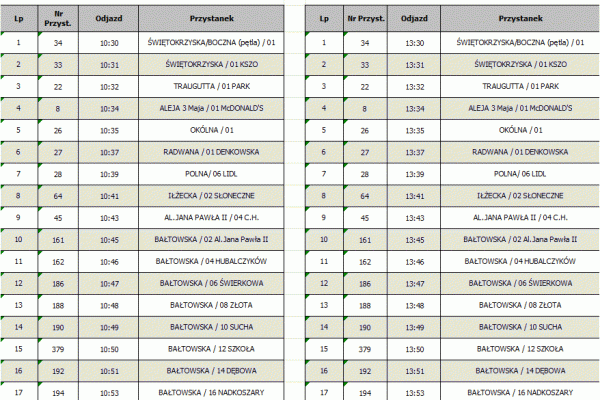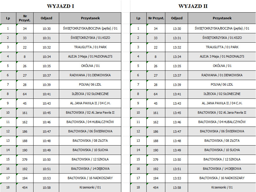 - wyjazd z Ostrowca Świętokrzyskiego (Baza – Świętokrzyska) – 10.30, 13.30