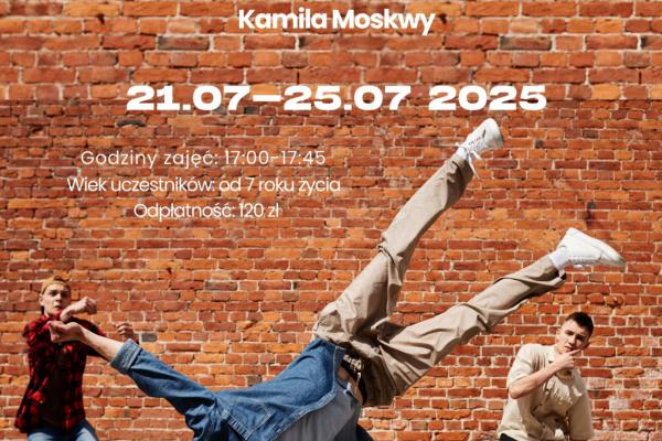 Breakdance to nauka rytmu, koordynacji, również nauka pewności siebie. Podczas zajęć Kamil Moskwa uczy podstawowych kroków i technik breakingu, co pozwala uczestnikom zajęć wyrażać swoje emocje poprzez taniec. Zajęcia prowadzone są w przyjaznej, radosnej atmosferze.