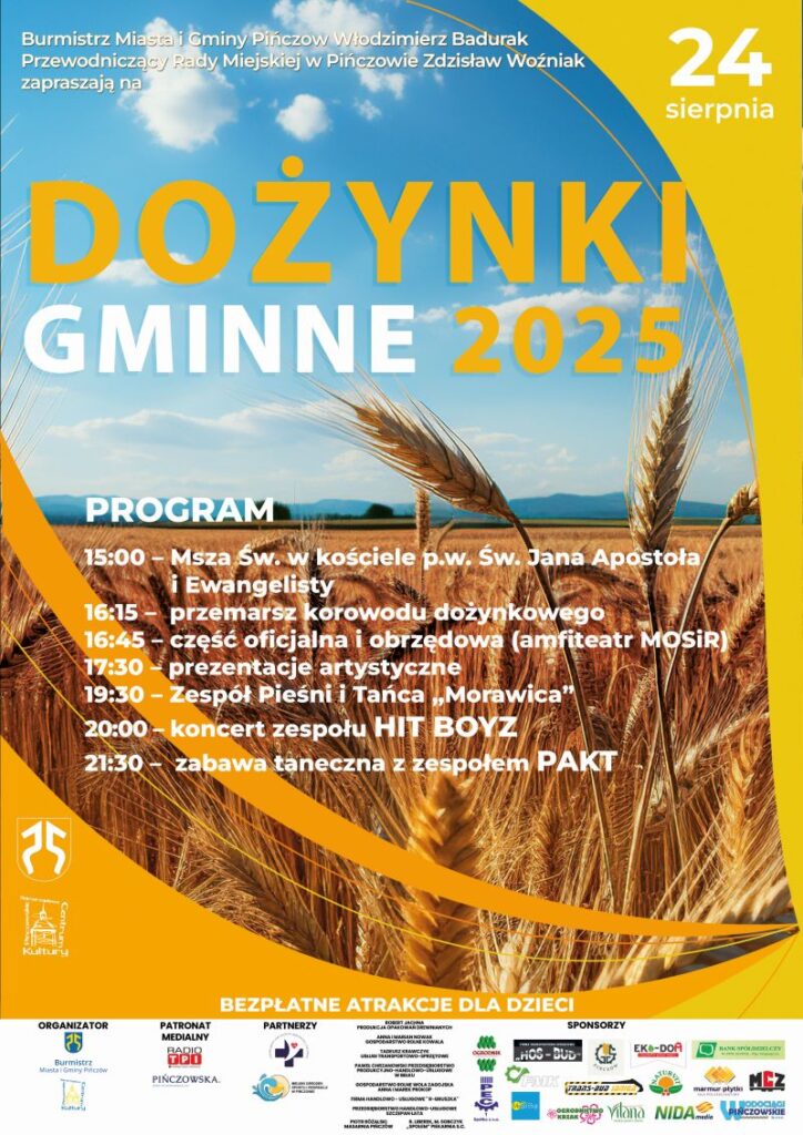 Tradycyjnie, na dożynkach nie zabraknie stoisk Kół Gospodyń Wiejskich z regionalnymi przysmakami oraz bezpłatnych atrakcji dla najmłodszych.