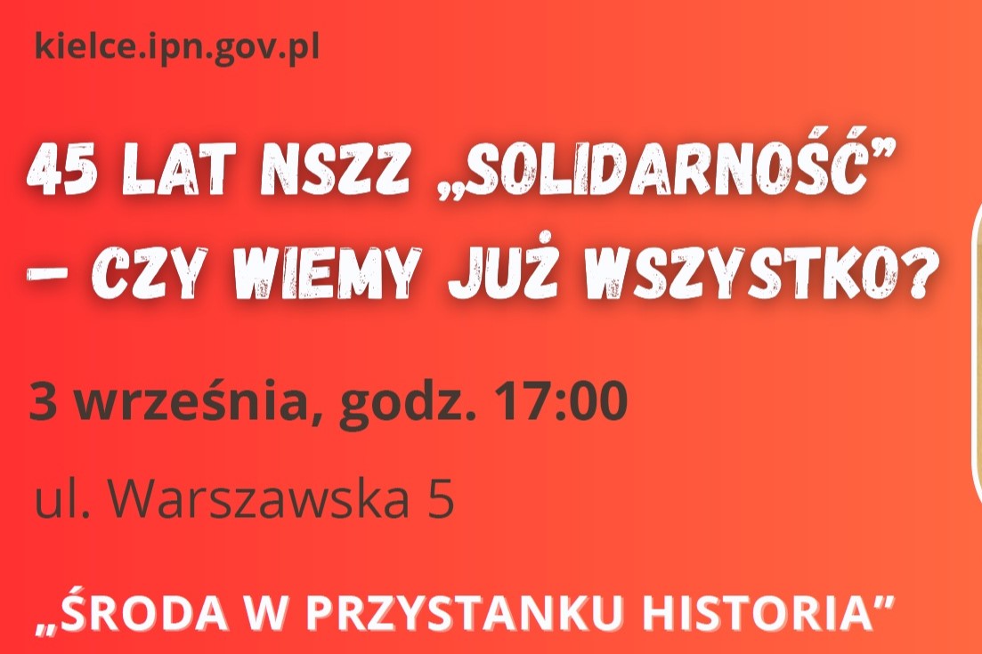 Warto się zastanowić czy o „Solidarności” wiemy już wszystko. Odpowiedzi na to pytanie szukać będą zarówno członkowie związku zaangażowani w działalność opozycji lat osiemdziesiątych XX wieku na Kielecczyźnie, jak i historycy od lat badający dzieje NSZZ „Solidarność”. Spotkanie odbędzie się w ramach cyklu „Środa w Przystanku Historia”. Wstęp jest wolny.