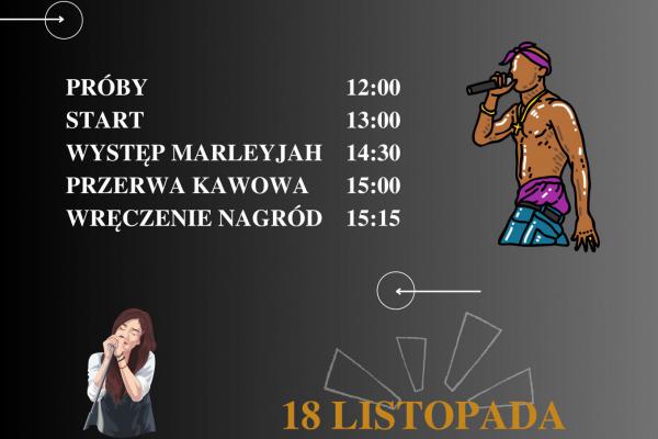 Wydarzenie w Sali Kameralnej DK „Zameczek” rozpoczną występy finalistów. Każdy uczestnik konkursu zaprezentuje jeden, dowolnie wybrany przez siebie utwór – głównie będą to kompozycje własne. Około godz. 14:30 zaśpiewa MarleJah, natomiast uroczyste wręczenie nagród laureatom nastąpi o godz. 15:15.