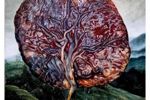 „W malarstwie zawsze interesowała mnie brzydota i biologiczne aspekty zachodzące w ciele człowieka. Inspiracją do obrazów są moje własne doświadczenia, które gromadziłem lecząc się w szpitalach dermatologicznych. Nigdy nie dążyłem do tego by obrazy pełniły funkcję dekoracyjną, tylko aby najlepiej oddawały jak choroba i ból fizyczny obciążają i wpływają na psychikę. Czuję, że kultura popularna narzucając normy wyglądu i to jak się zachowujemy, jednocześnie na wstępie wyklucza osoby z którymi się identyfikuję. Chciałem stworzyć przestrzeń, w której brzydota okaże się pociągająca i ciekawa. Coraz bardziej powszechne operacje plastyczne, mające na celu nadążanie za zmieniającymi się wciąż kanonami piękna, zainspirowały mnie do tworzenia własnych „tworów", które przedstawiam na obrazach. Proces powstawania obrazów ma charakter kolażu – układam organiczne konfiguracje, które ostatecznie stają się obrazem. Myślę, że to kwestia osadzenia w danym kontekście kulturowym determinują o ich pięknie lub brzydocie. W czasie szukania inspiracji na nowe obrazy, natknąłem się na zagadnienie transplantologii. Przeszczepianie komórek, tkanek i narządów jest obecnie bardzo rozwijającą się i uznaną metodą leczenia. Bardzo fascynujące wydały mi się szczególnie zagadnienia i historie pacjentów dotyczące transplantologii twarzy. Od tej pory w swoich kolażach i obrazach wykorzystuję motyw organów wewnętrznych człowieka, które stają się budulcem dla „nowych" postaci.”