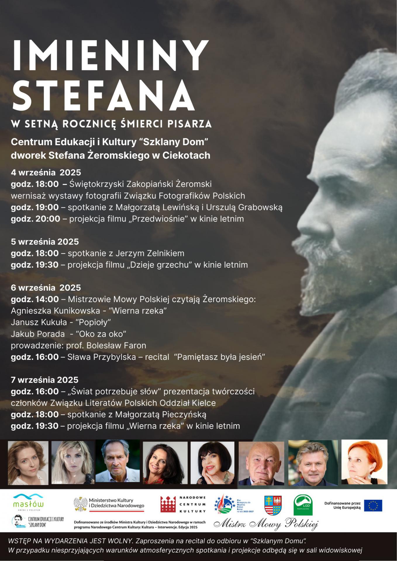 W sobotę, 6 września o godzinie 14 na tarasie dworku Stefana Żeromskiego będzie można posłuchać interpretacji przygotowanych specjalnie z tej okazji. Fragmenty „Wiernej rzeki” odczyta Agnieszka Kunikowska, laureatka tytułu Mistrz Mowy Polskiej z 2021 roku. Z kultowym pierwszym rozdziałem „Popiołów” zmierzy się Janusz Kukuła, reżyser radiowy i pisarz, długoletni dyrektor i główny reżyser Teatru Polskiego Radia, laureat tytułu Mistrz Mowy Polskiej z 2015 roku. Nieznane szerszej grupie czytelników fragmenty opowiadania „Oko za oko” przeczyta Jakub Porada, dziennikarz, prezenter, autor książek, podróżnik, laureat tytułu Mistrz Mowy Polskiej z 2024 roku. Wstępem spotkanie opatrzy i poprowadzi prof. Bolesław Faron, członek grona wybierającego Mistrzów Mowy Polskiej.