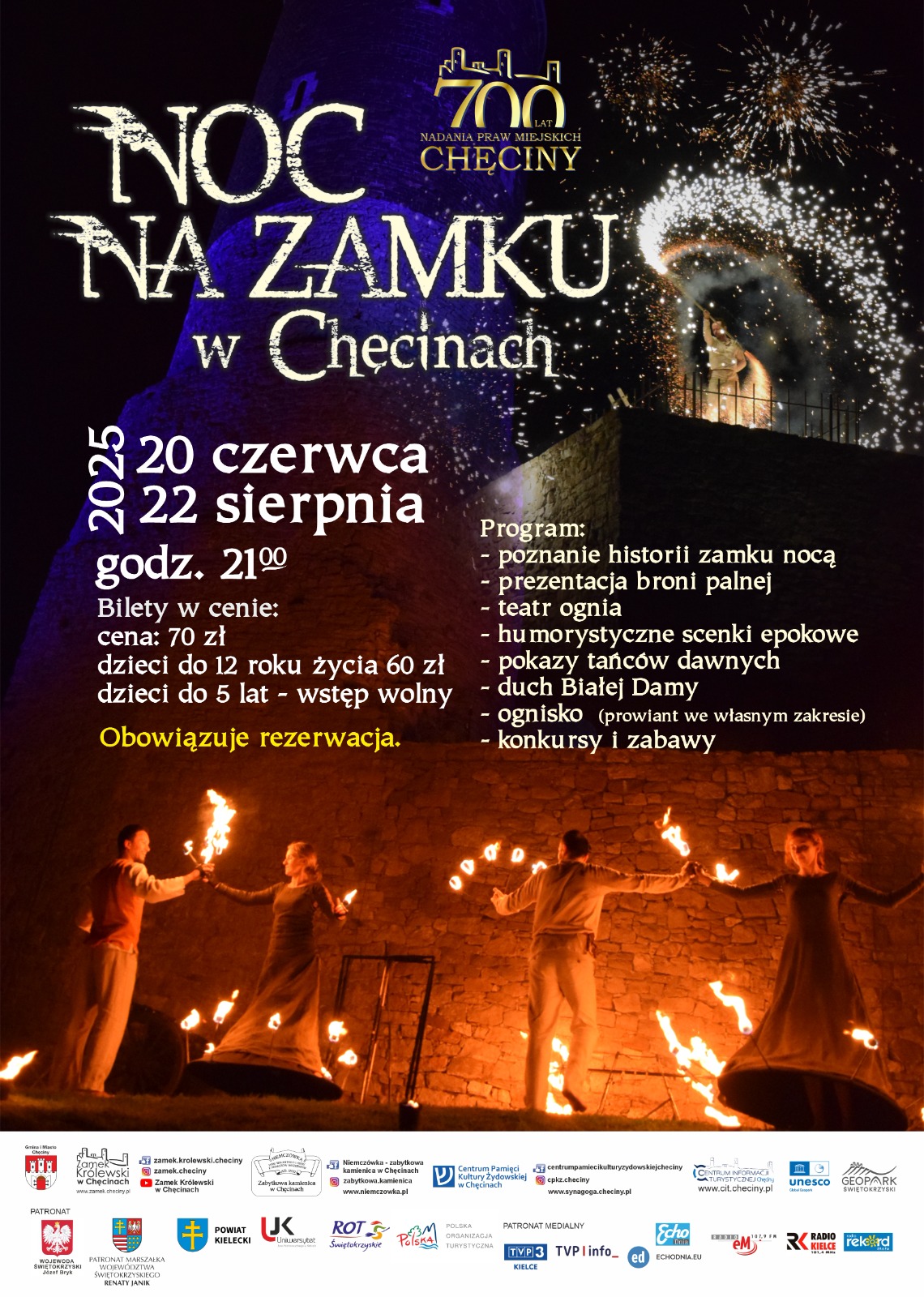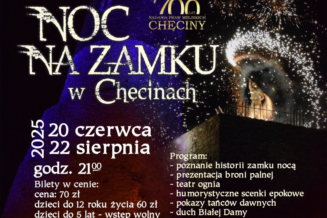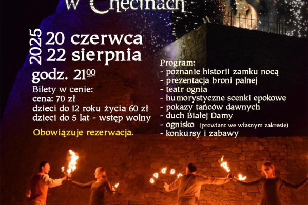 To będzie wieczór pełen ognia, emocji i średniowiecznych klimatów. Uczestnicy przeniosą się w świat dawnych legend, rycerskich potyczek i opowieści z przymrużeniem oka. W programie między innymi: widowiskowy teatr ognia, Biała Dama, scenki historyczne z humorem, pokazy tańców dawnych, gry, konkursy i animacje oraz magiczna nocna iluminacja zamku.