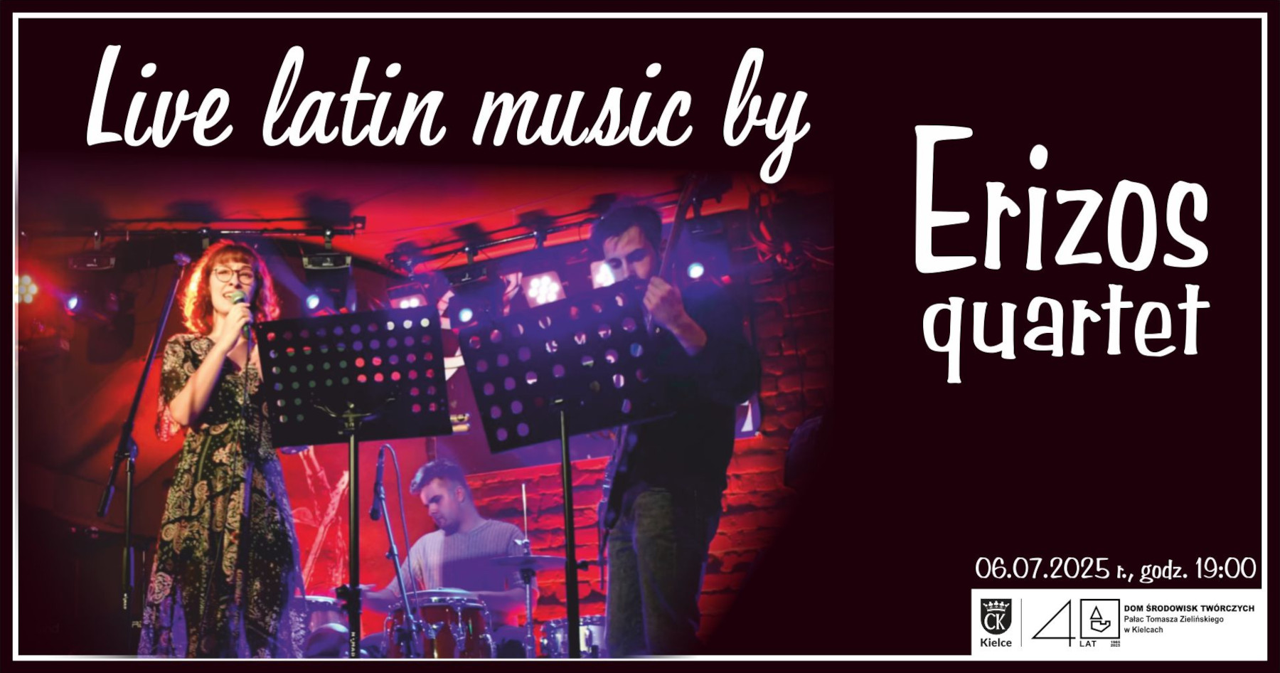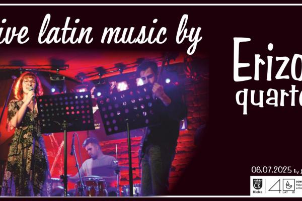 Koncert Live latin music by Erizos quartet rozpocznie się o godzinie 19. Bilety w cenie 30 zł, a dzieci i młodzież szkolna – 5 zł, do nabycia w kasie Domu Środowisk Twórczych w Kielcach oraz online.
