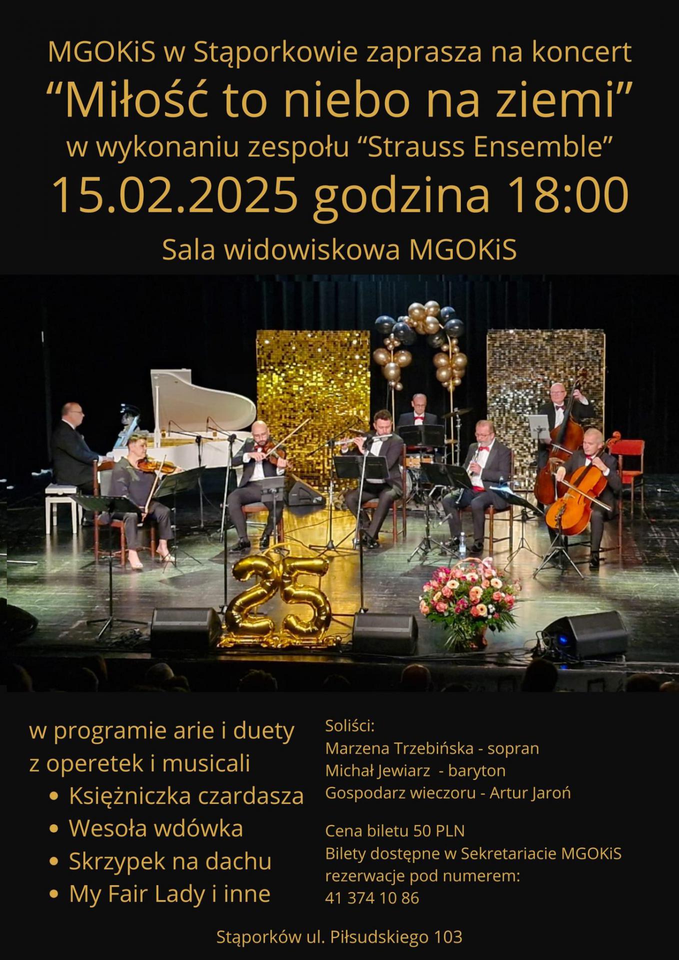 Koncert odbędzie się 15 lutego o godzinie 18 w sali widowiskowej Miejsko-Gminnego Ośrodka Kultury i Sportu w Stąporkowie. Bilety w cenie 50 złotych dostępne w sekretariacie instytucji. Rezerwacje pod numerem telefonu 41 374 10 86.