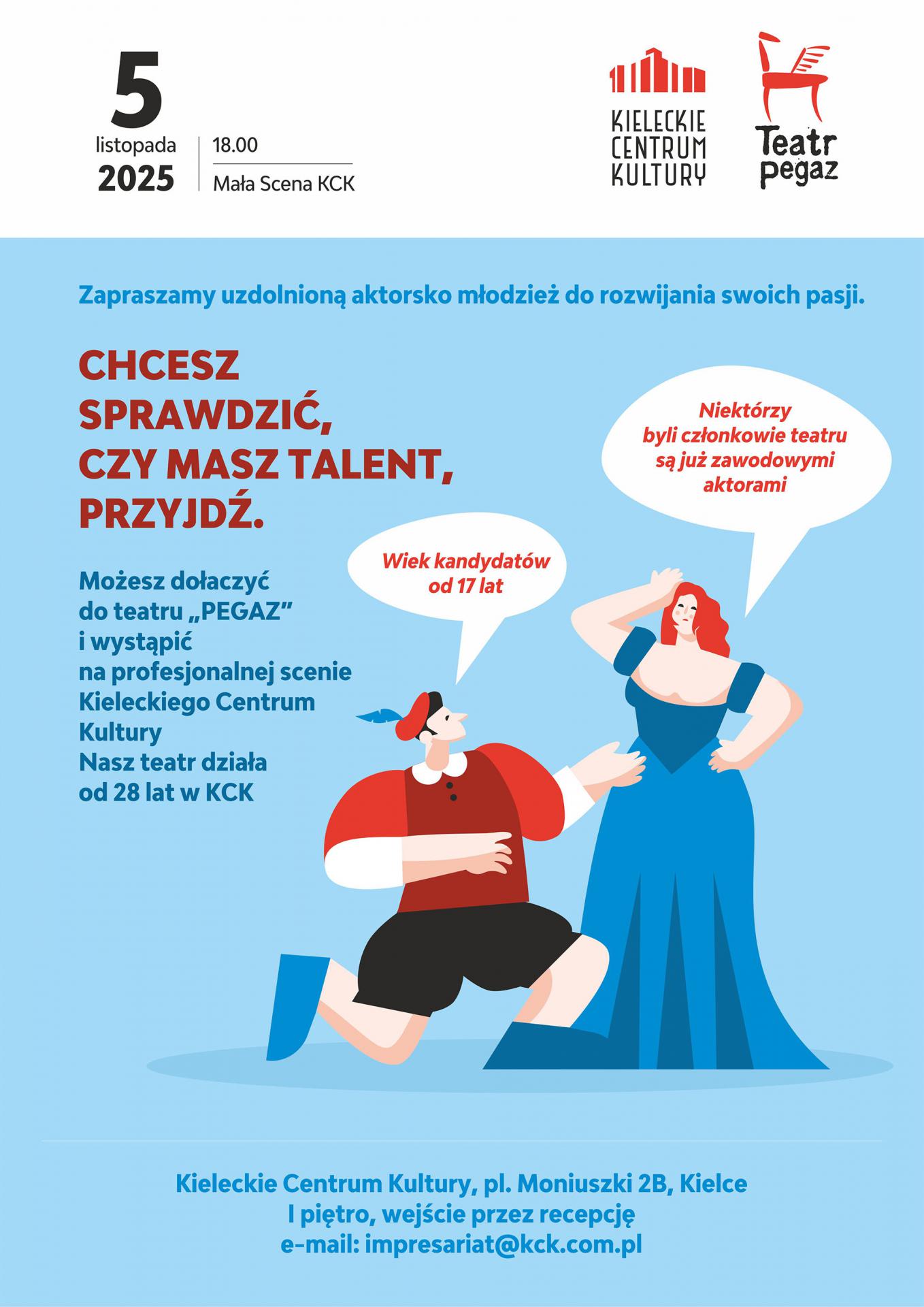 To propozycja dla tych, którzy marzą o karierze aktorskiej, chcą sprawdzić swoje umiejętności i doskonalić warsztat artystyczny. Aby dołączyć do zespołu należy mieć ukończone 17 lat. Wszyscy uczestnicy zajęć biorą udział w autorskich spektaklach i występują na profesjonalnej scenie Kieleckiego Centrum Kultury.