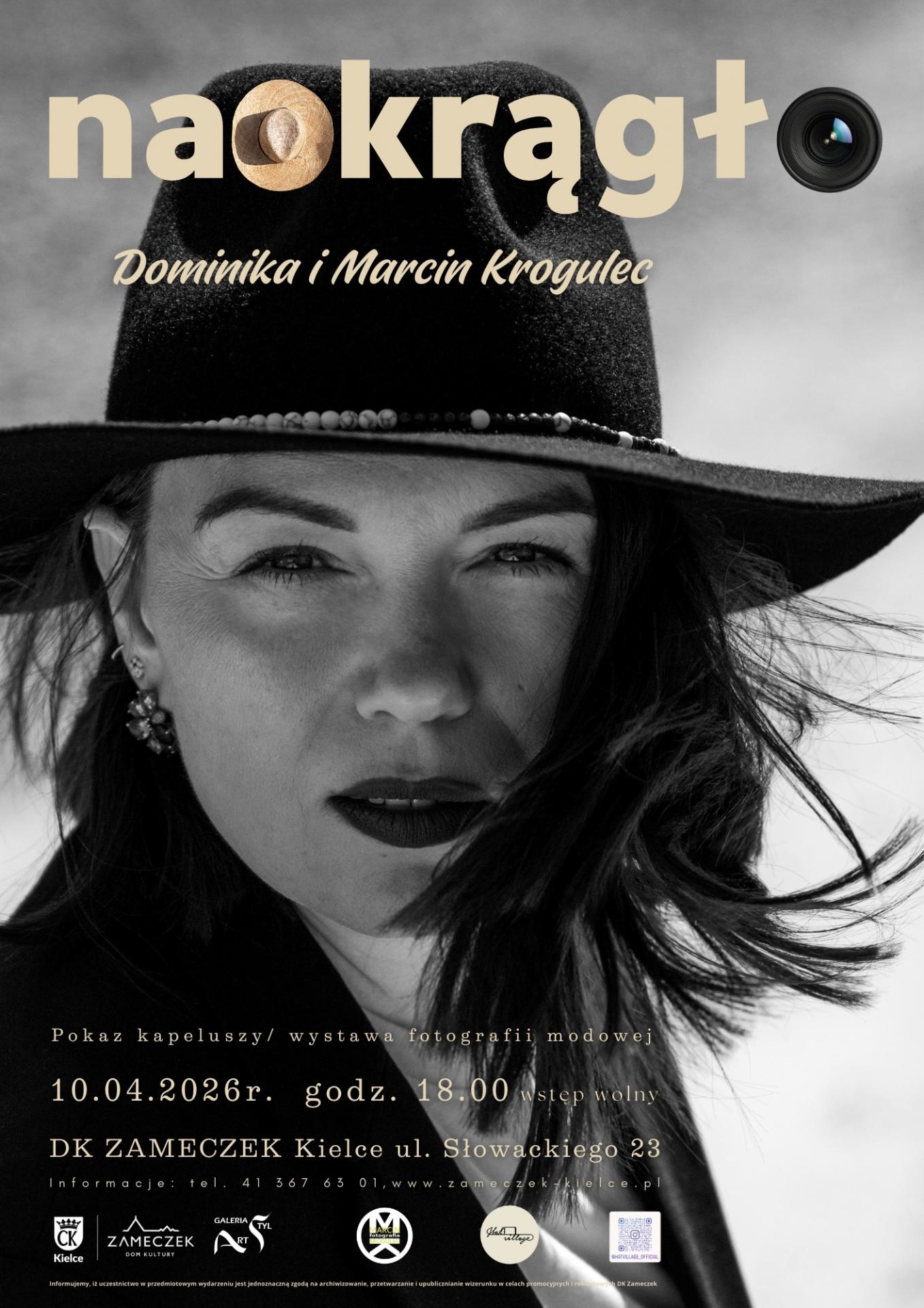 Tworzą duet artystyczny, w którym rzemiosło spotyka się z obrazem. Ona projektuje i ręcznie wykonuje kapelusze oraz fascynatory, łącząc klasyczne techniki z nowoczesną formą i wrażliwością na detal. On zajmuje się fotografią mody, budując kadry oparte na świetle, emocji i świadomej kompozycji. Wystawa „Naokrągło” jest ich wspólną opowieścią o formie, która powraca – o elegancji zaklętej w okręgu, o modzie, która zatacza koło, i o dialogu między obiektem a jego wizerunkiem.