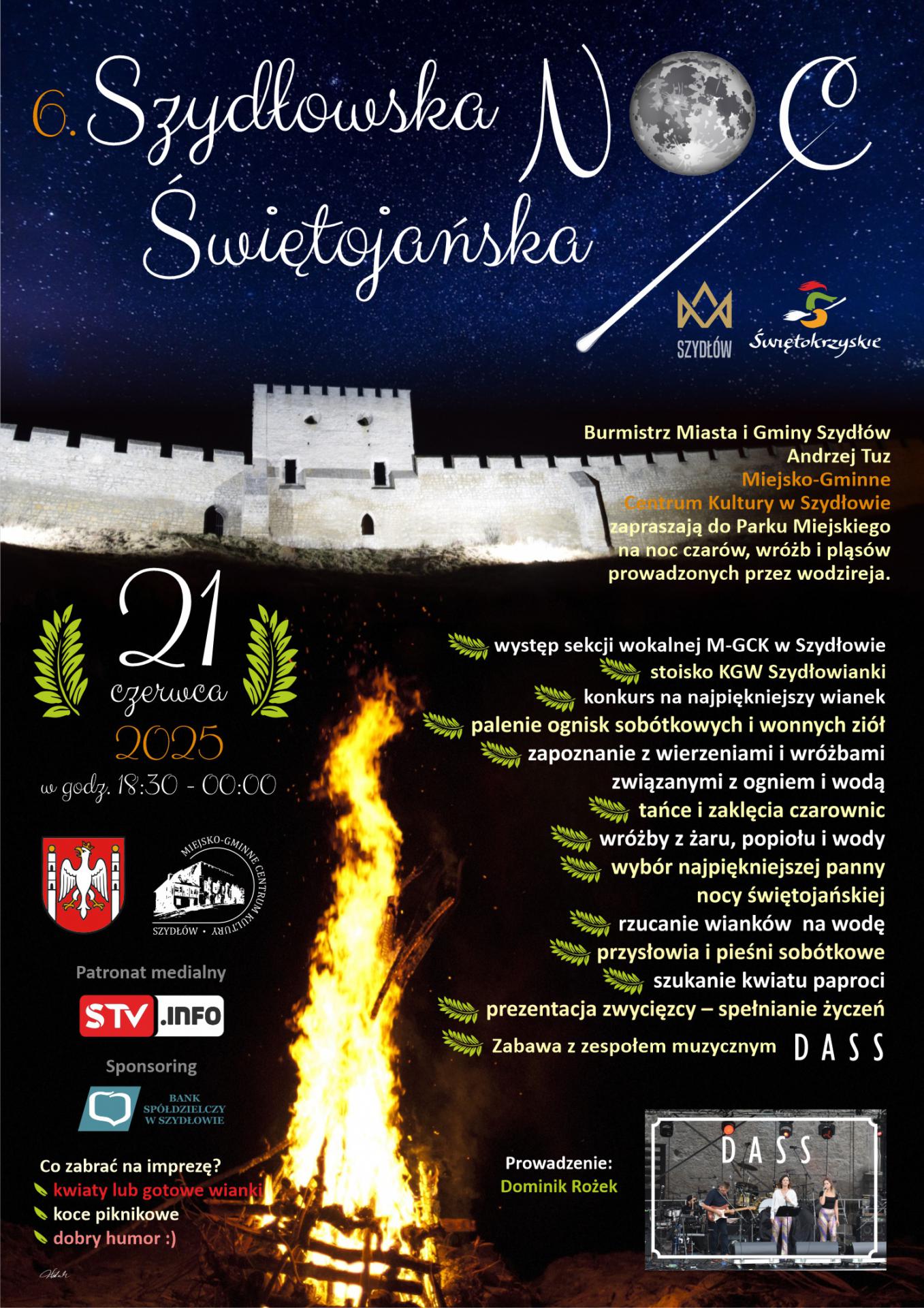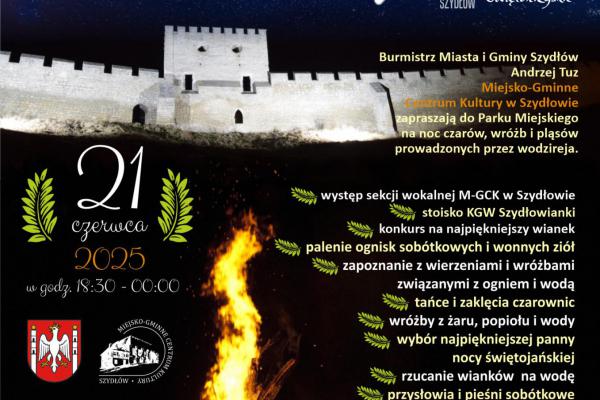 W programie Nocy Świętojańskiej znajdą się występy artystyczne sekcji wokalnej Miejsko-Gminnego Centrum Kultury w Szydłowie, konkurs na najpiękniejszy wianek, wróżby związane z ogniem i wodą, rzucanie wianków na wodę, szukanie kwiatu paproci, tańce i zaklęcia czarownic oraz tradycyjne palenie ognisk sobótkowych i wonnych ziół. O oprawę muzyczną zadba Zespół DASS, a animacje poprowadzi wodzirej Dominik Rożek. Nie zabraknie również stoiska z regionalnymi przysmakami przygotowanymi przez Koło Gospodyń Wiejskich „Szydłowianki”.