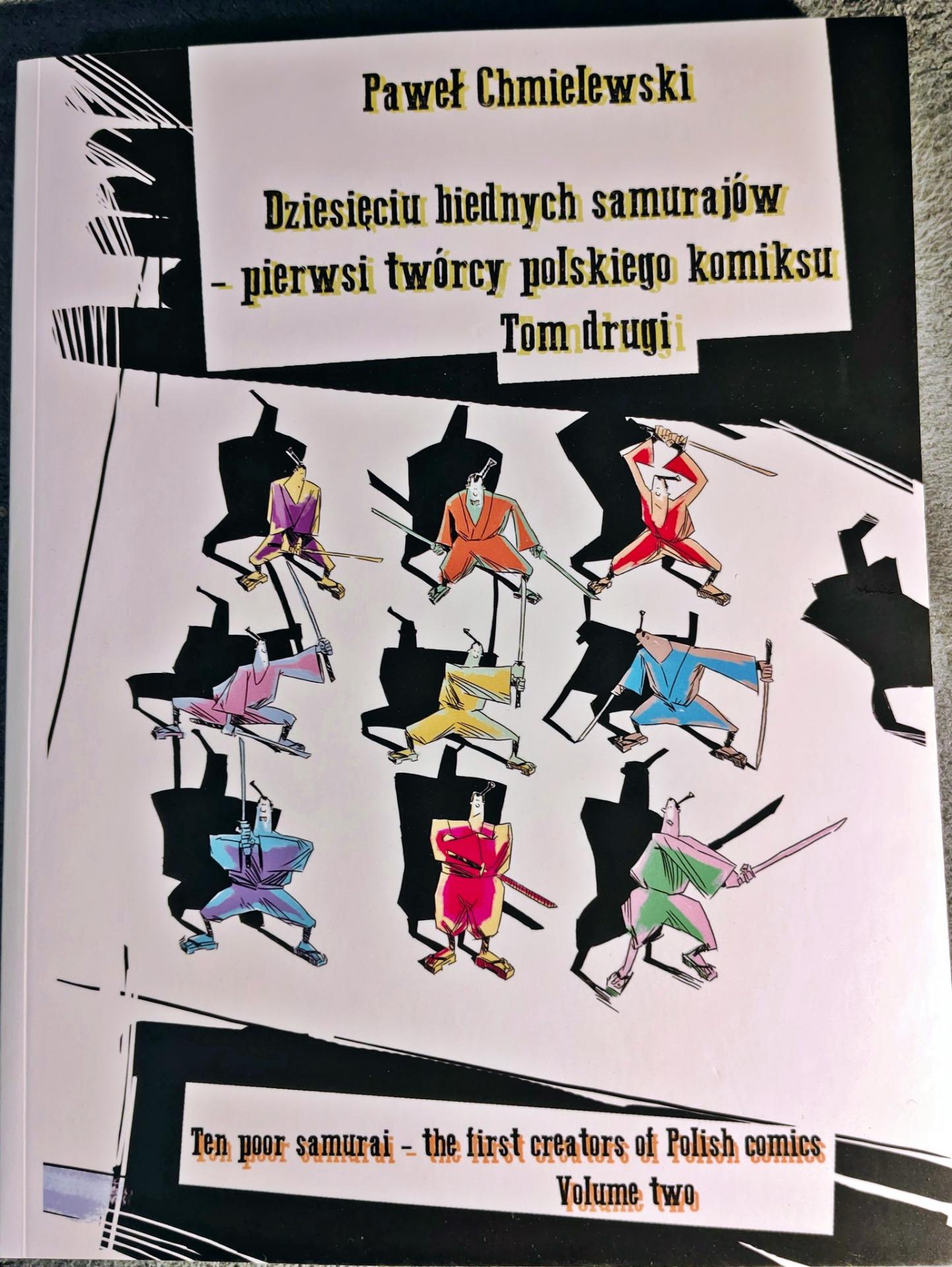„Dziesięciu biednych samurajów..." Pawła Chmielewskiego to kontynuacja „Siedmiu Wspaniałych. Pierwsi twórcy polskiego komiksu") i ukazuje mniej znanych kreatorów dziewiątej sztuki (żyjących w XIX i na początku XX stulecia) nie jako osobne, wyabstrahowane byty, zaś komiks jako wypreparowaną dziedzinę (która specjalnie musiała się „narodzić" i posiada bardzo sztywne ramy gatunkowe), ale komiks jako najlepszy przykład literatury wizualnej, ściśle związany z innymi dziedzinami kultury, istniejący również w kontekście historii, społecznych przemian, idei, rozwoju technologii, wojny i pokoju. Opowiadanie za pomocą sekwencji obrazów odwołujących się do literackich opowieści towarzyszyło polskiej kulturze już u samych jej początków. Stąd w publikacji ukazujących formy komiksowe – jako fascynujący przykład melanżu sztuki popularnej i wysublimowanej/wysokiej – obecność na początku dwóch anonimowych artystów polskiego średniowiecza, symbolizujących dwa nurty narracyjnych opowieści obrazkowych – religijny (Mistrz Piotr i jego Drzwi Gnieźnieńskie) oraz świecki (Mistrz Pani Ginewry z unikalnymi w Europie malowanymi komiksami arturiańskimi z Siedlęcina).