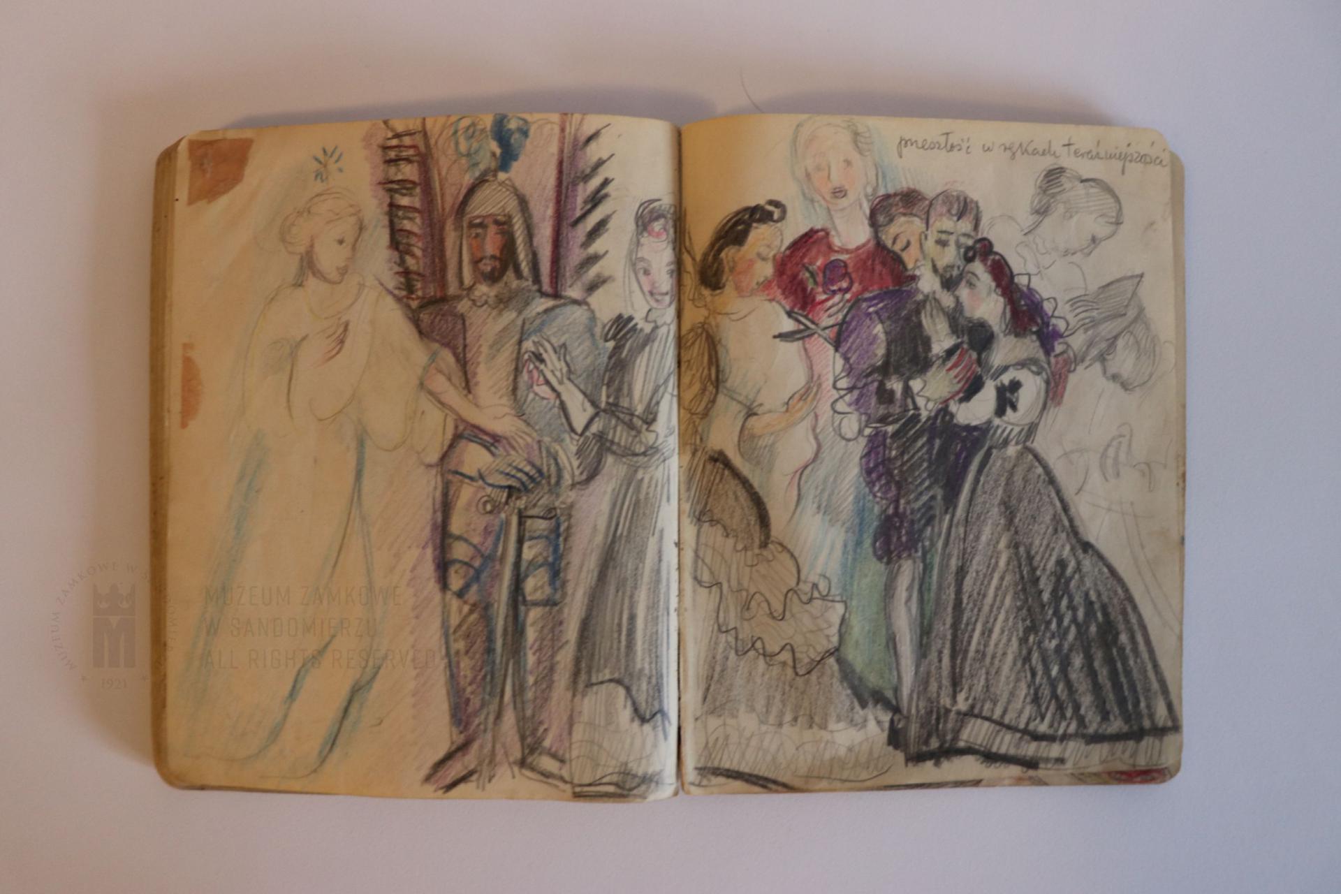 Każda z ilustracji została podpisana na odwrocie lub na stronie sąsiedniej, zwięzłym, niekiedy humorystycznym opisem. Rysunki są naturalistyczne, niektóre mają znamiona karykatury. Przedstawienia obejmują portrety, sceny zbiorowe, rodzajowe oraz plenerowe. Artystka dokumentuje okres okupacji niemieckiej w Gierczycach, gdzie udzielano schronienia uchodźcom wojennym, do których ona sama należała. Tematem jest tu dwór i jego okolice, mieszkańcy i goście dworu oraz sąsiednich majątków, osoby zatrudnione do posługi. Jest to rodzaj kroniki towarzyskiej, w której artystka sportretowała ówczesną elitę ziemi sandomierskiej. Ukazuje nie tylko życie salonowe i świąteczne, ale także codzienność miejsca od zaplecza, między innymi od kuchni. Doskonale odzwierciedla panujące podczas okupacji nastroje. Do sportretowanych osób należą członkowie rodzin: Karskich, Klabińskich, Skotnickich, Łempickich, Wyganowskich, Kossaków, Skarżyńskich, Załęskich.
