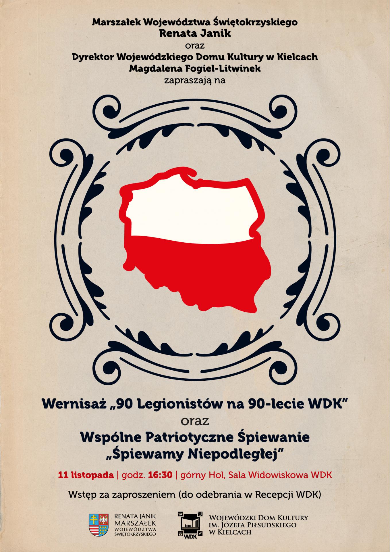 Spotkanie rozpocznie się o godzinie 16.30 wernisażem wystawy „90 Legionistów na 90-lecie WDK” w górnym holu Wojewódzkiego Domu Kultury. Ekspozycja jest artystycznym hołdem dla żołnierzy i bohaterów walk o niepodległość oraz nawiązuje do bogatej historii i tradycji miejsca, które od dziewięciu dekad służy mieszkańcom regionu.