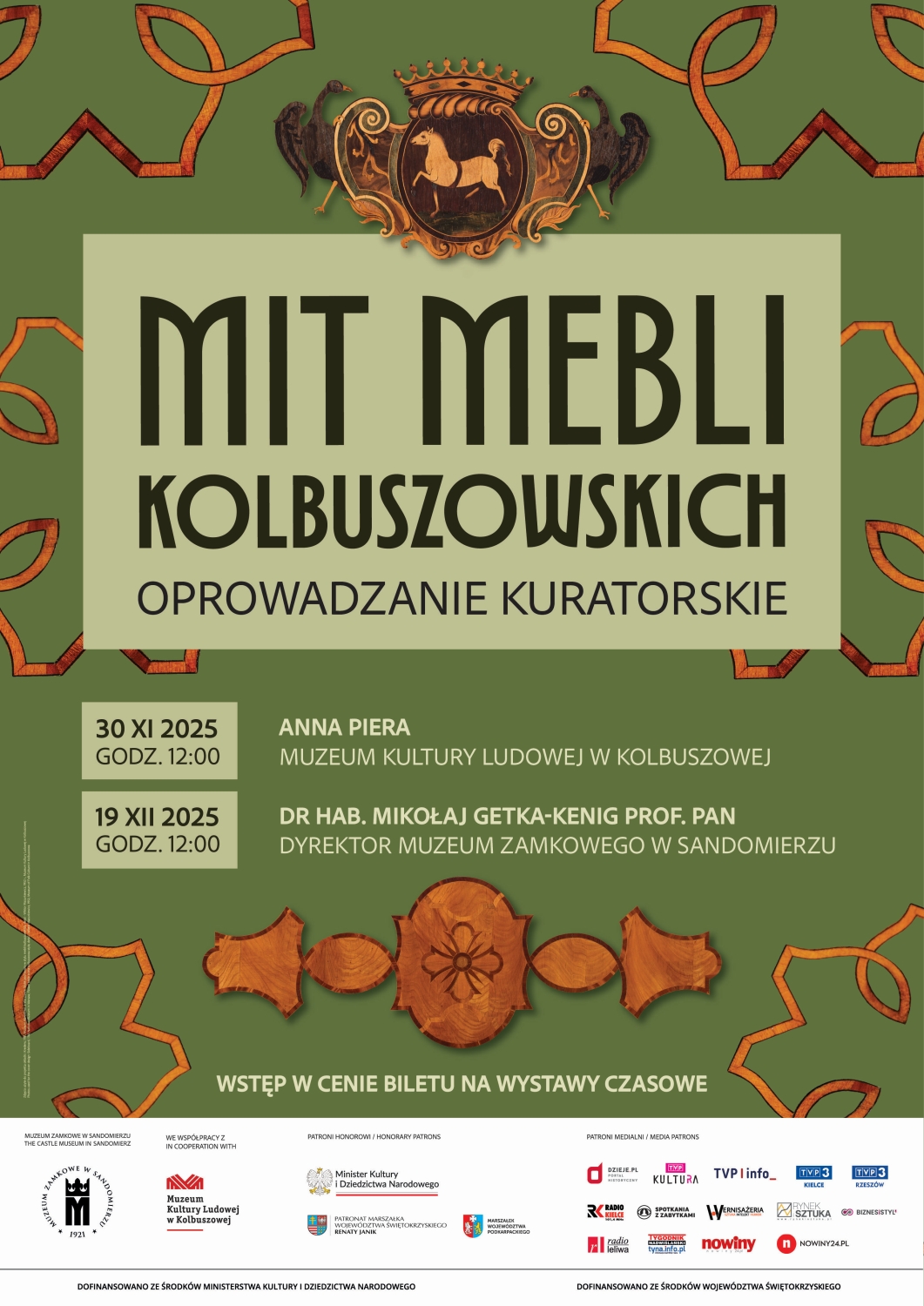 Wystawa „Mit mebli kolbuszowskich” powstała z myślą o przybliżeniu twórczości meblarskiej związanej z warsztatem kolbuszowskim. Ośrodek meblarski w Kolbuszowej działał głównie na przestrzeni XVIII i XIX w. (znane są przykłady mebli jeszcze z początków XX w.) i był związany z czołowymi rodami magnackimi dawnej Rzeczypospolitej. Użytkownikami tych mebli byli magnaci, średniozamożna szlachta i mieszczaństwo.
