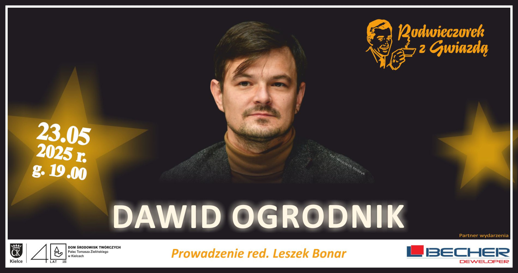 Podwieczorek z Gwiazdą – spotkanie z Dawidem Ogrodnikiem w Pałacyku Zielińskiego w Kielcach w piątek, 23 maja 2025 r. o godz. 19:00. Bilety w cenie 30 zł (do 20.05.2025 r.), później 40 zł do nabycia w kasie Domu Środowisk Twórczych przy ul. Zamkowej 5 w Kielcach oraz online. Więcej informacji na stronie internetowej www.palacykzielinskiego.pl.