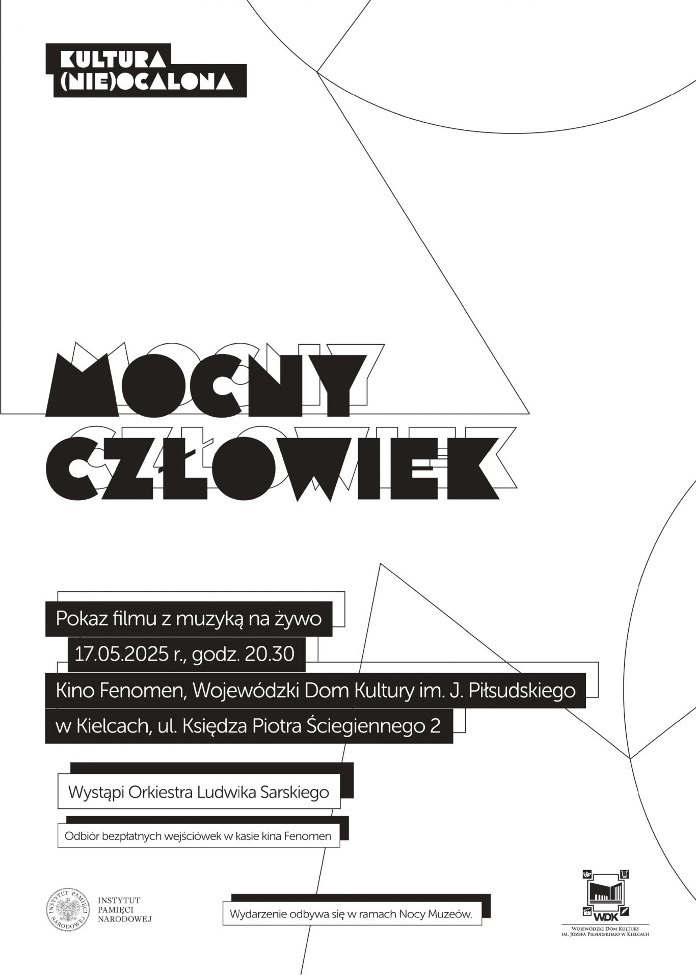 Orkiestra będzie akompaniować na żywo podczas pokazu filmu niemego pt. „Mocny człowiek”. To obraz psychologiczny z 1929 roku w reżyserii Henryka Szaro, sfilmowany przez włoskiego operatora Giovanniego Vitrottiego i jeden z ostatnich polskich filmów z epoki kina niemego. Odrodził się jak feniks z popiołów po tym, jak jedna z kopii została odnaleziona w 1997 roku w Belgii. Przez kilkadziesiąt lat sądzono, że nie zachowała się żadna z wersji filmu. W 2006 roku taśmy wzięła pod swoje skrzydła Filmoteka Narodowa, które zrekonstruowała je cyfrowo.
