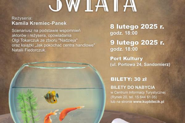 Spektakl zachęca widzów do zastanowienia się nad tym, co by było, gdyby świat miał się skończyć? Gdyby miał nastąpić tytułowy Koniec świata – dosłowny lub metaforyczny, który ma początek w naszej podświadomości. Komediodramat pokazuje, jak różne osoby radzą sobie z jego nieuchronnością, z dezorientacją, strachem, jakie postawy przyjmują, jak uwypuklają się ich problemy i przywary. Nie brak w nim też humoru i groteski.