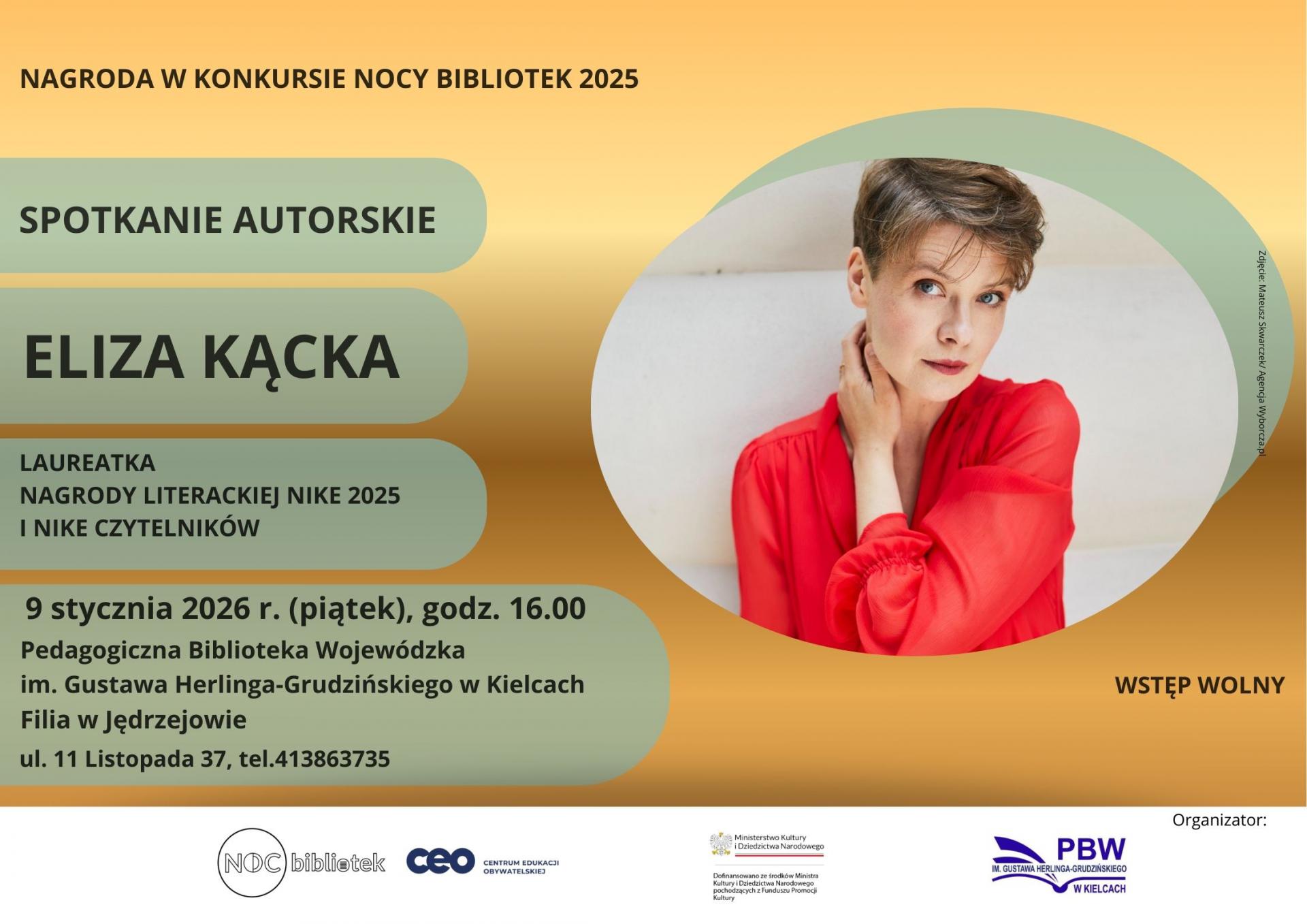 W piątek, 9 stycznia, pisarka będzie gościem Pedagogicznej Biblioteki Wojewódzkiej im. Gustawa Herlinga-Grudzińskiego w Kielcach Filia w Jędrzejowie. Podczas spotkania opowie o książce „Wczoraj byłaś zła na zielono” – nagrodzonej, szeroko komentowanej prozie autobiograficznej, w której autorka podejmuje temat odmienności, relacji rodzinnych, macierzyństwa oraz znaczenia słów i emocji. Początek o godzinie 16.