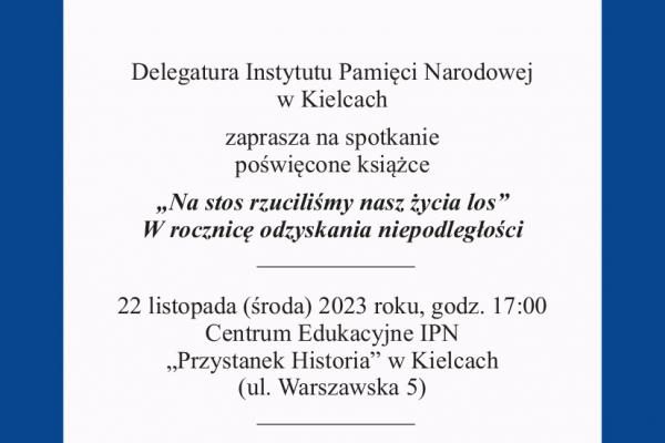 Początek spotkania (wstęp wolny) o godzinie 17.00 w Centrum Edukacyjnym IPN „Przystanek Historia” przy ul. Warszawskiej 5 w Kielcach.