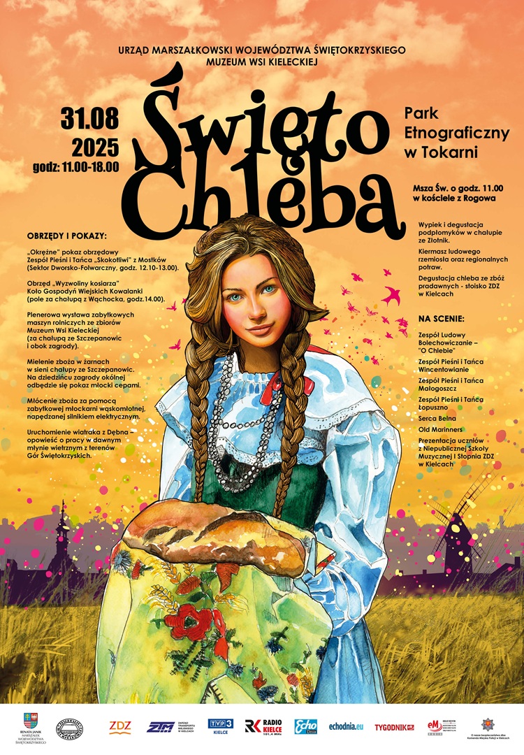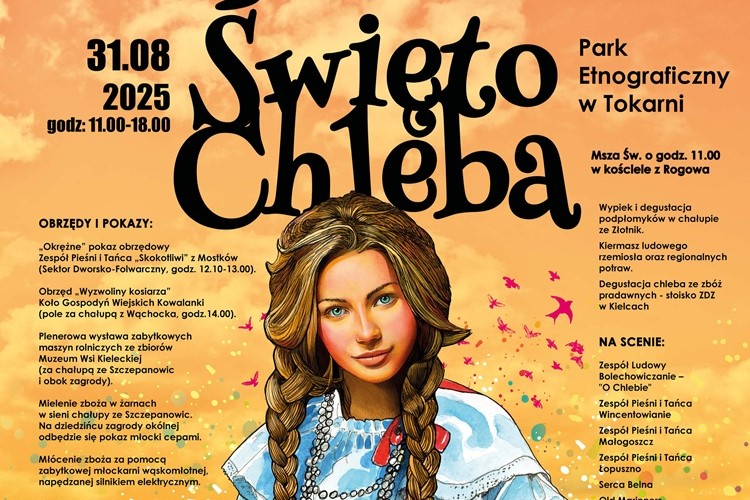 Święto Chleba rozpocznie się o godzinie 11 uroczystą mszą świętą w kościele z Rogowa z oprawą Zespołu Ludowego Bolechowiczanie. Następnie barwny korowód, prowadzony przez Zespół Pieśni i Tańca Skokotliwi, przejdzie do Dworu z Suchedniowa, gdzie odbędzie się widowisko „Okrężne”, zainspirowane utworem Józefa Korzeniowskiego.