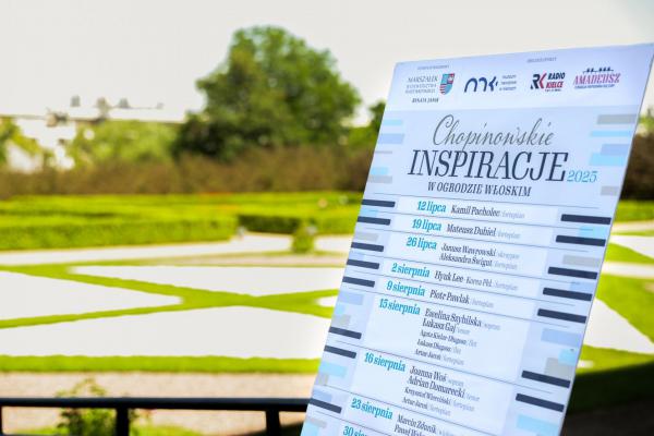„Chopinowskie inspiracje” to prawdziwa uczta dla miłośników dzieł Fryderyka Chopina i innych wybitnych kompozytorów muzyki klasycznej. Cykliczne koncerty w ogrodzie włoskim organizowane są od 2020 roku i od początku cieszą się dużym zainteresowaniem publiczności. Wydarzenie jest okazją do wysłuchania utalentowanych muzyków zarówno z Polski, jak i z innych części świata, a wśród wykonawców znajdują się laureaci prestiżowego Międzynarodowego Konkursu Chopinowskiego.
