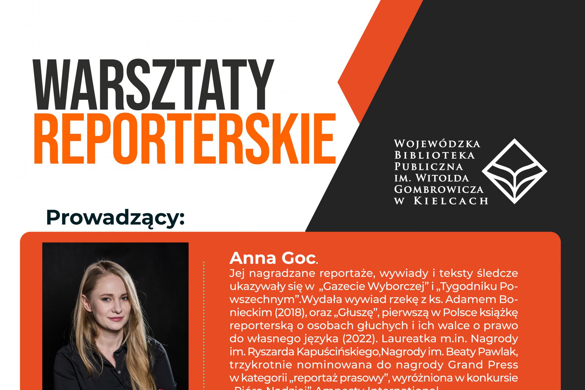 Anna Goc – jej nagradzane reportaże, wywiady i teksty śledcze ukazywały się w Gazecie Wyborczej i Tygodniku Powszechnym. Wydała wywiad rzekę z ks. Adamem Bonieckim oraz Głuszę, pierwszą w Polsce książkę reporterską o osobach głuchych i walce o prawo do własnego języka. Laureatka m. in. Nagrody im. Ryszarda Kapuścińskiego, Nagrody im. Beaty Pawlak, wyróżniona w konkursie Pióro Nadziei Amnesty International.