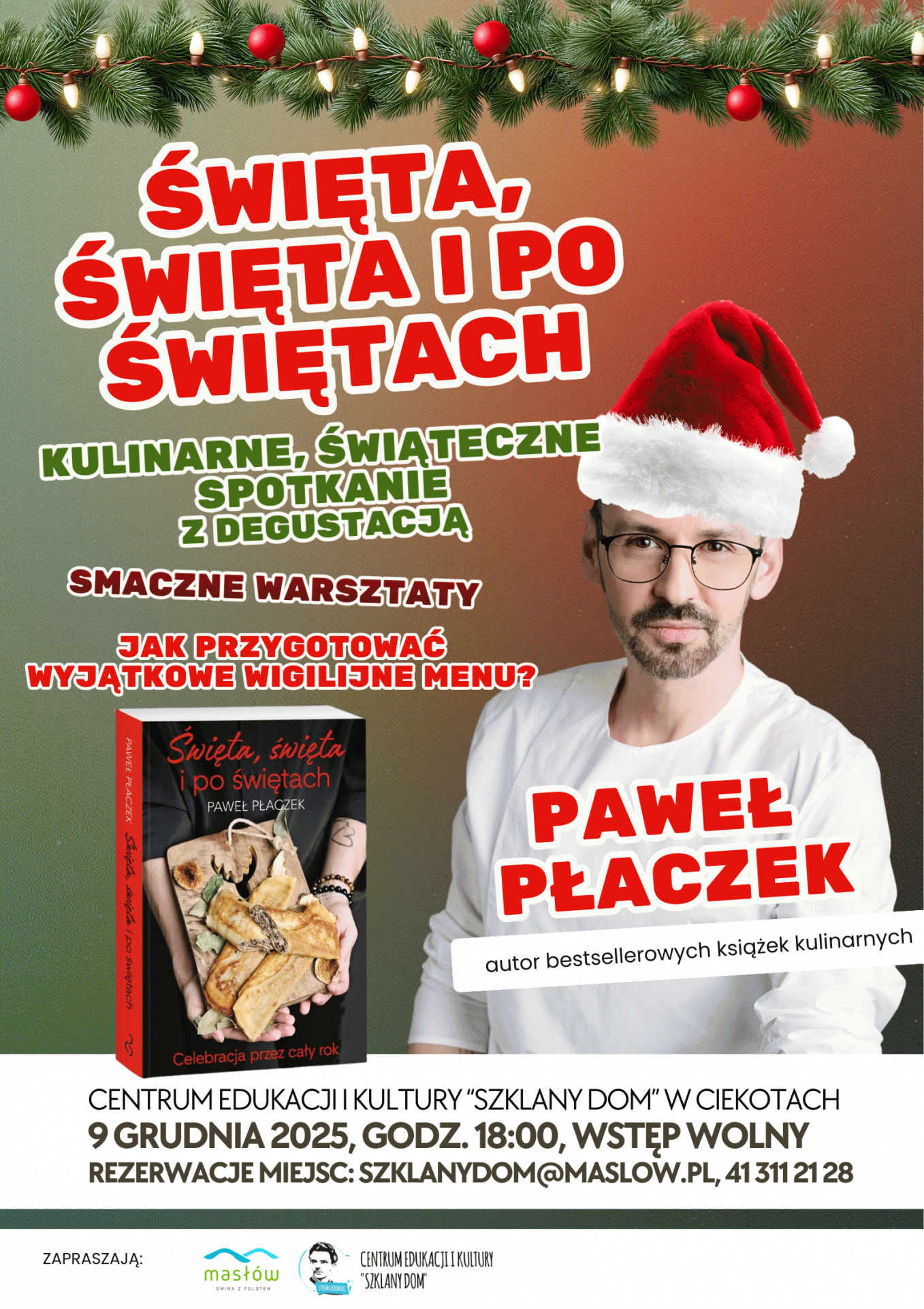 Podczas spotkania prowadzący opowie o swoich przygotowaniach do świąt i zdradzi przepisy na najsmaczniejsze dania, które mogą zaskoczyć wszystkich gości, a nie wymagają wielu godzin przygotowania. Nie zabraknie również elementów warsztatowych połączonych z degustacjami i wspólnego przygotowania potraw.