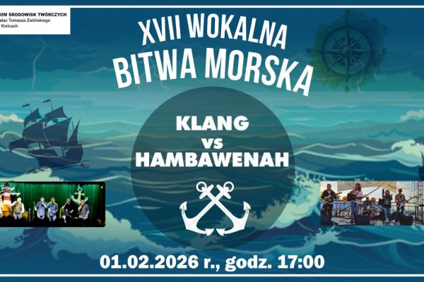 XVII Wokalna Bitwa Morska odbędzie się 1 lutego o godzinie 17 w Pałacyku Tomasza Zielińskiego w Kielcach. Bilety w cenie 60 zł do nabycia w kasie Domu Środowisk Twórczych oraz online.