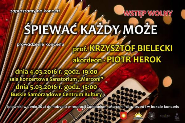 Na koncert pt. "Śpiewać każdy może" do Buska-Zdroju zaprasza Buskie Samorządowe Centrum Kultury.