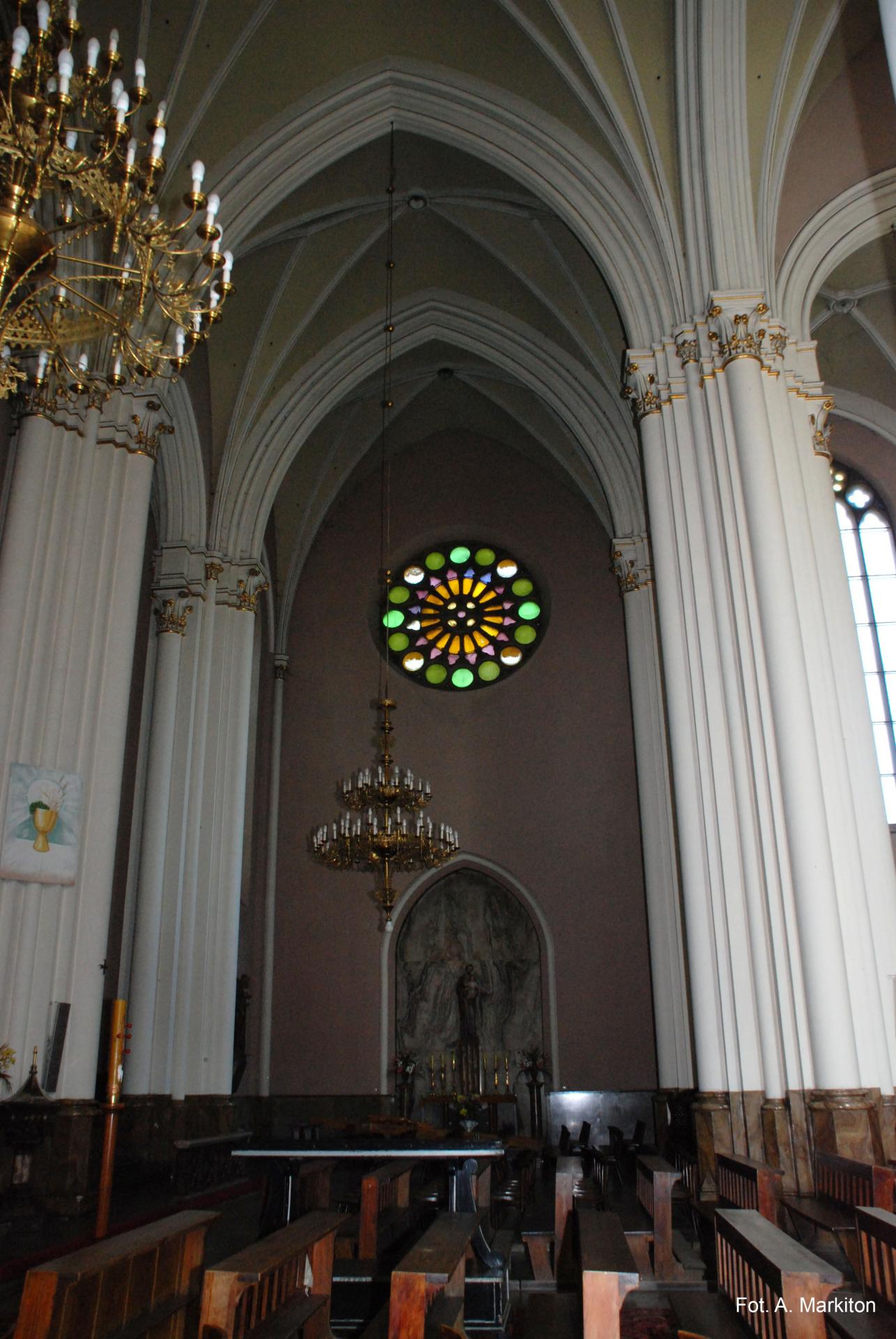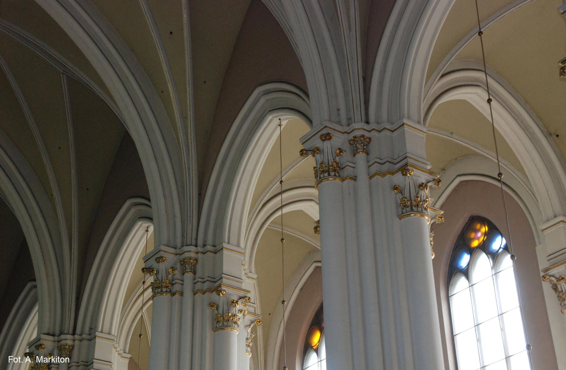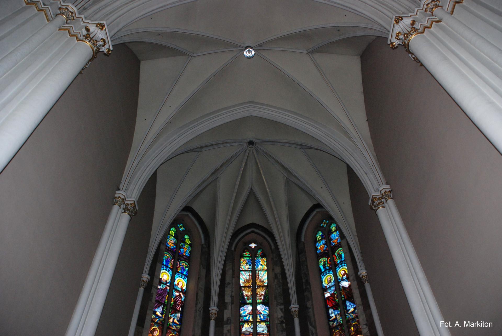 Detal kościoła zaprojektowany jest bardzo starannie. Starannie przemyślano też jego wnętrza, nakryte sklepieniami – gwiaździsto-żebrowymi nawy głównej i krzyżowo-żebrowymi w nawach bocznych. Kościół jest niemal idealnie symetryczny. Jedynym odstępstwem są dostawione do wież od wschodu i zachodu przybudówki - zachodnia jest o jedną kondygnację wyższa.