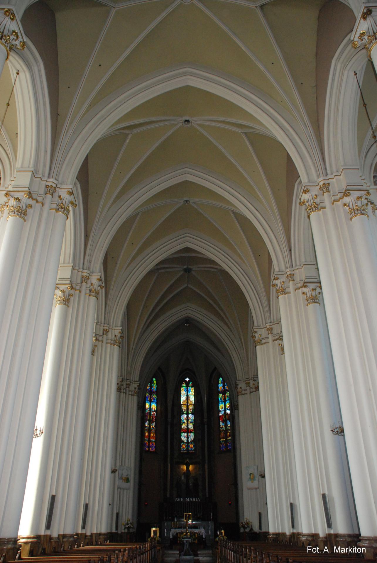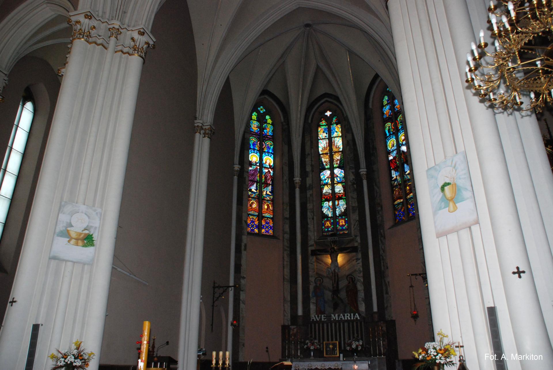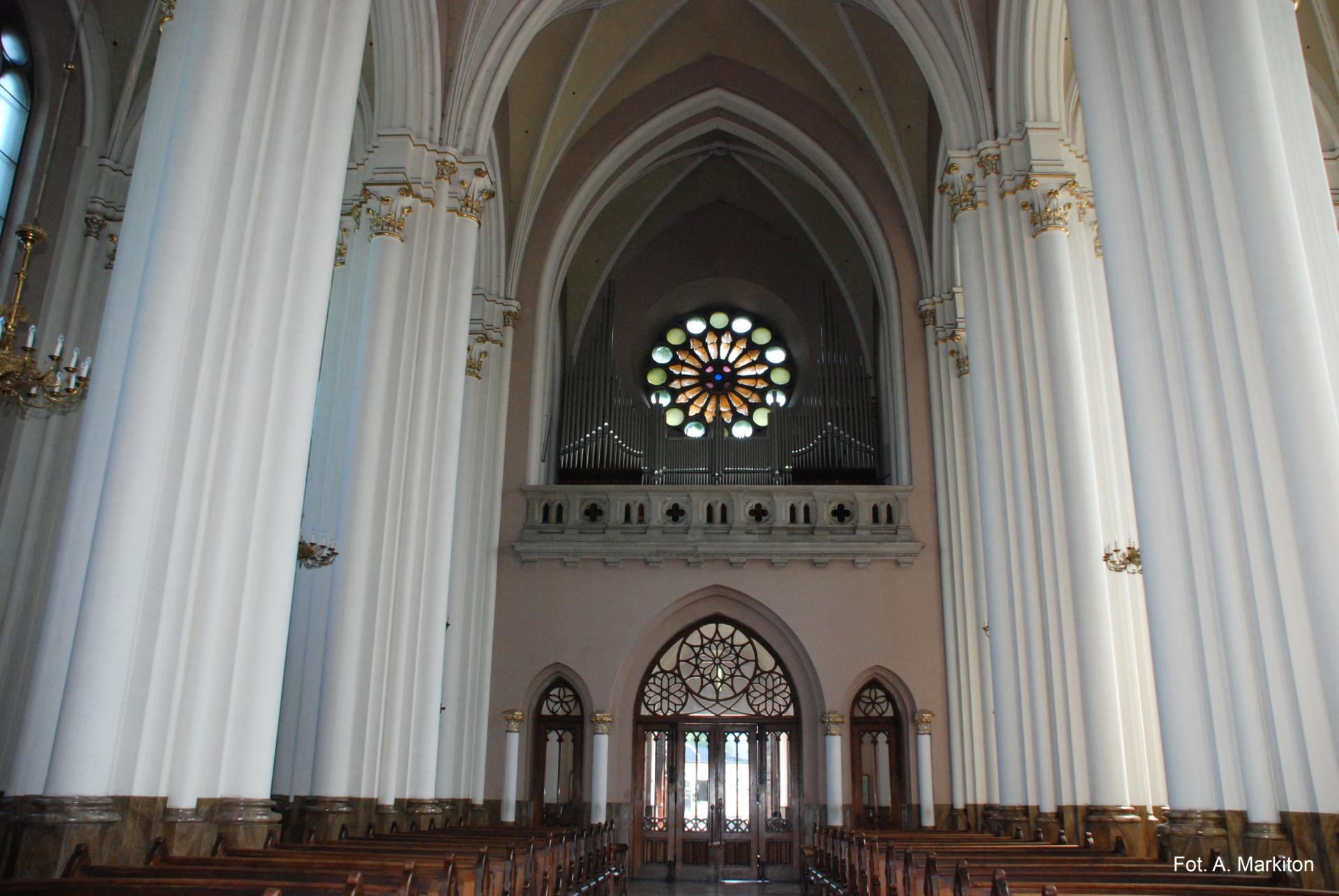 Detal kościoła zaprojektowany jest bardzo starannie. Starannie przemyślano też jego wnętrza, nakryte sklepieniami – gwiaździsto-żebrowymi nawy głównej i krzyżowo-żebrowymi w nawach bocznych. Kościół jest niemal idealnie symetryczny. Jedynym odstępstwem są dostawione do wież od wschodu i zachodu przybudówki - zachodnia jest o jedną kondygnację wyższa.