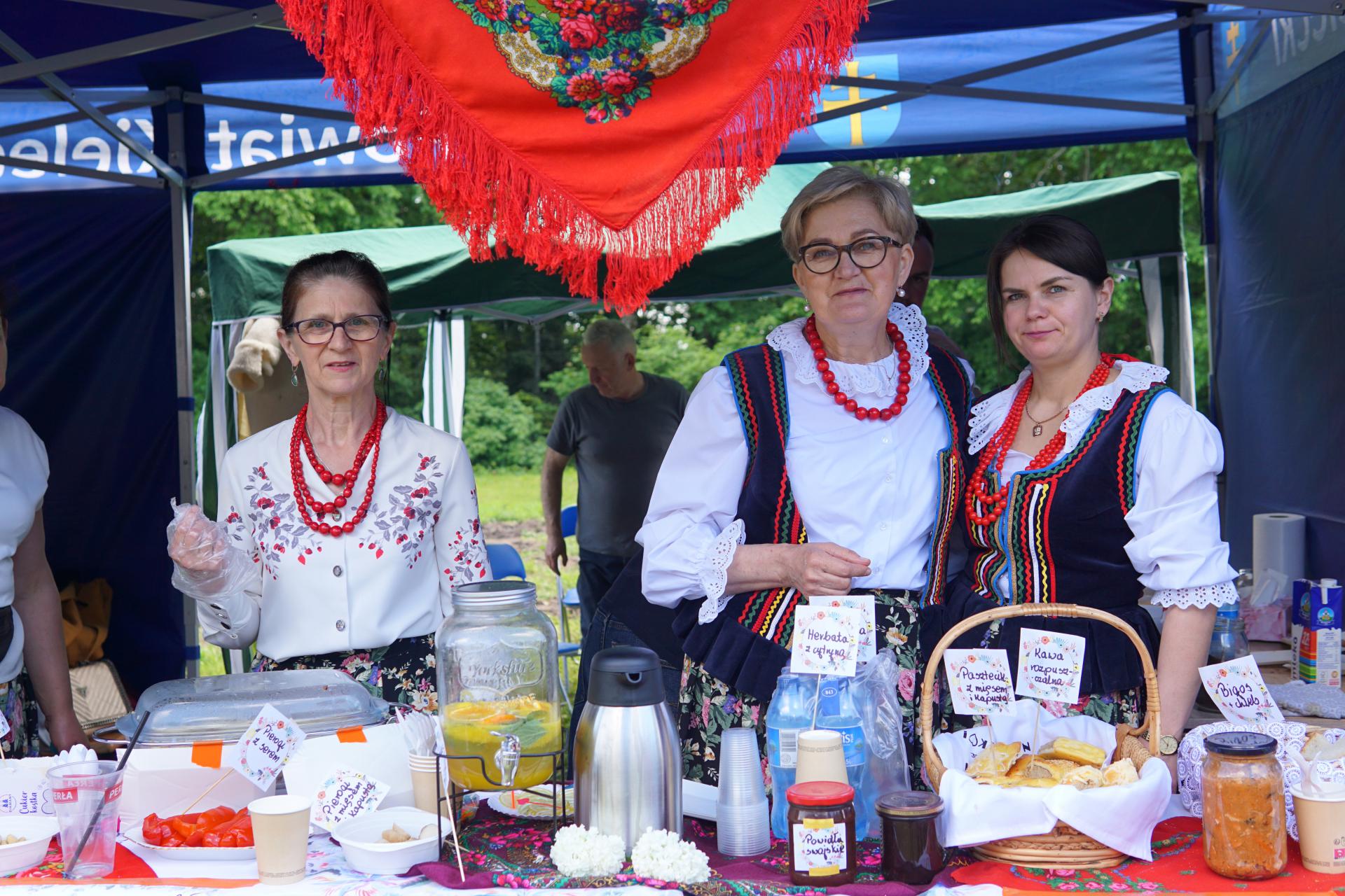 Nie zawiedli wystawcy, którzy przygotowali bogatą ofertę wyrobów rękodzielnicznych. Panie z Kół Gospodyń Wiejskich przygotowały (m.in.) domowej roboty pierogi z mięsem i kapustą w okrasie oraz pajdy ze smalcem. Na miejscu wypiekały gorące oponki z serem i cukrem pudrem. Nie zabrakło ciast z truskawkami, serników i jabłeczników. Panie zaprosiły turystów także na oryginalne naturalne lemoniady z pączków jodły, sosny z dodatkiem miodu i cytryny.