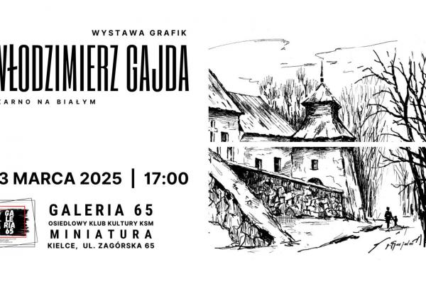 13 marca o godz. 17.00 w Galerii 65 w Osiedlowym Klubie "Miniatura" w Kielcach odbędzie się wernisaż wystawy prac Włodzimierza Gajdy pt. "Czarno na białym".